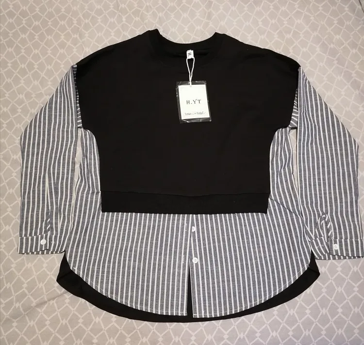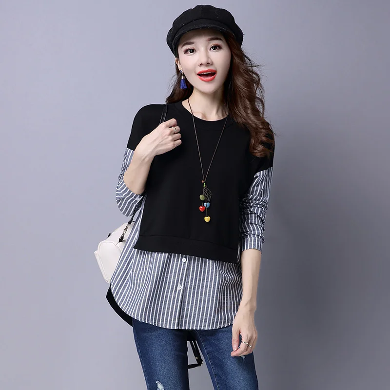Женская рубашка-кимоно в полоску, с длинным рукавом и круглым вырезом