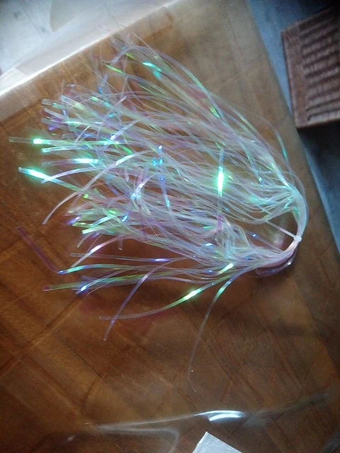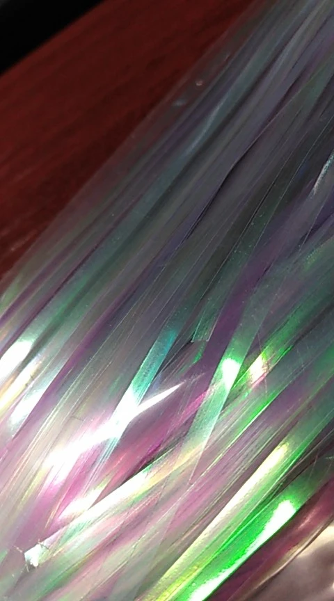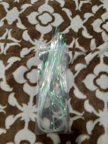 Планирую использовать на щучьи стримеры и на спинки мушкам типа фазантейл и их аналогам. Цвет не такой зелёный - перламутровый с розоватыми тонами.