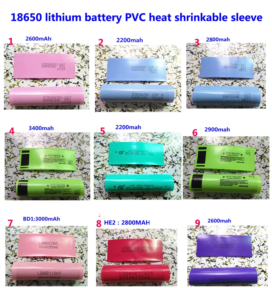 100 шт.лот 18650 литиевый аккумулятор пакет рукав, термоусадочный рукав, Крышка батарейного отсека, оболочка из ПВХ термоусадочная пленка 3400 мАч