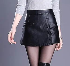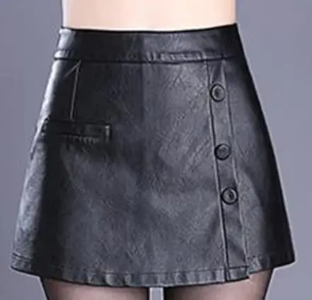 Женские весенние юбки выше колена из искусственной кожи, лидер продаж, Женская Осенняя черная кожаная юбка, женские зимние свободные кожаные шорты на пуговицах