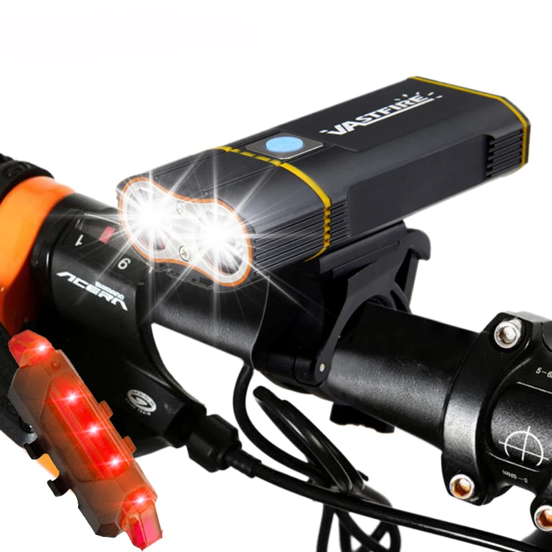 Перезаряжаемый велосипедный фонарь на руль, 1000 лм, 2x ярких светодиосветодиодный, передняя фара велосипеда со встроенным аккумулятором 6000 мАч + крепление + светильник онарь
