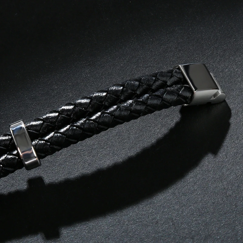 Изысканный плетеный кожаный браслет с защелками из нержавеющей стал...