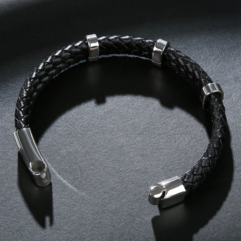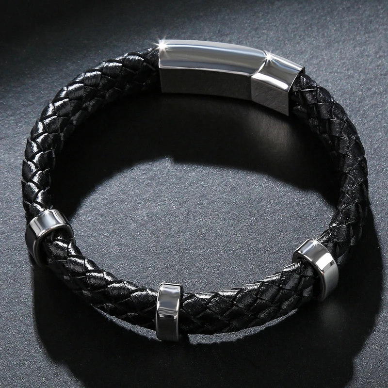Модные мужские браслеты, плетеные кожаные браслеты из нержавеющей с...