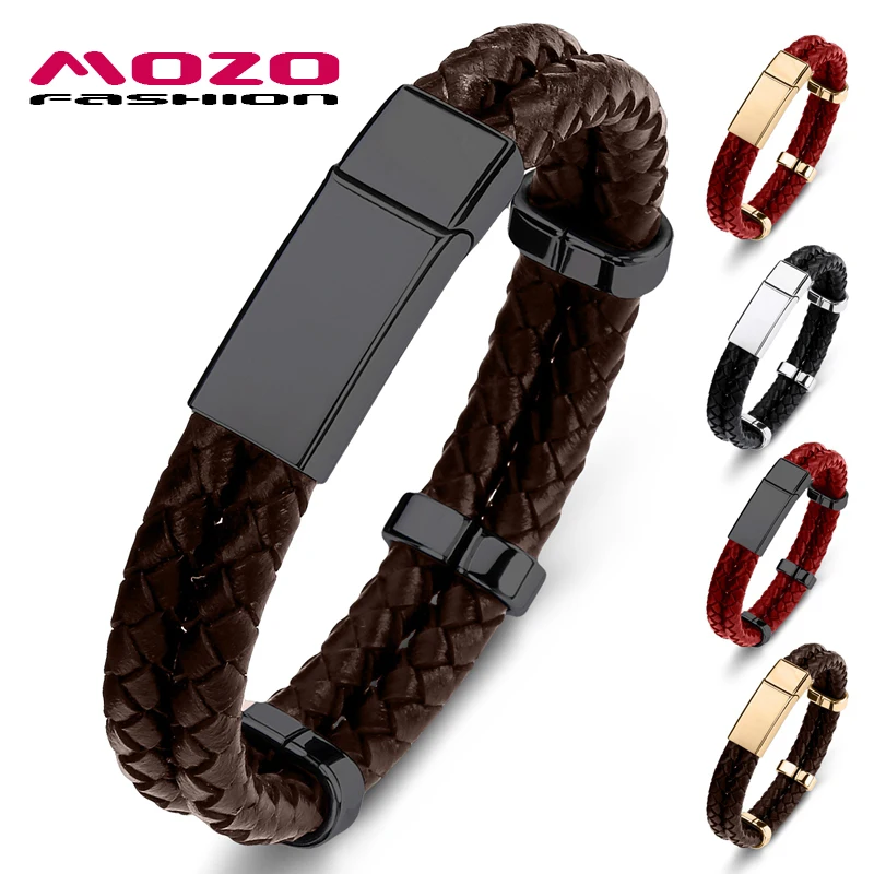 Модные Классические мужские браслеты MOZO 2021, браслеты из натуральной кожи, Пряжка из нержавеющей стали, Прямая поставка, Женские Ювелирные изделия 107