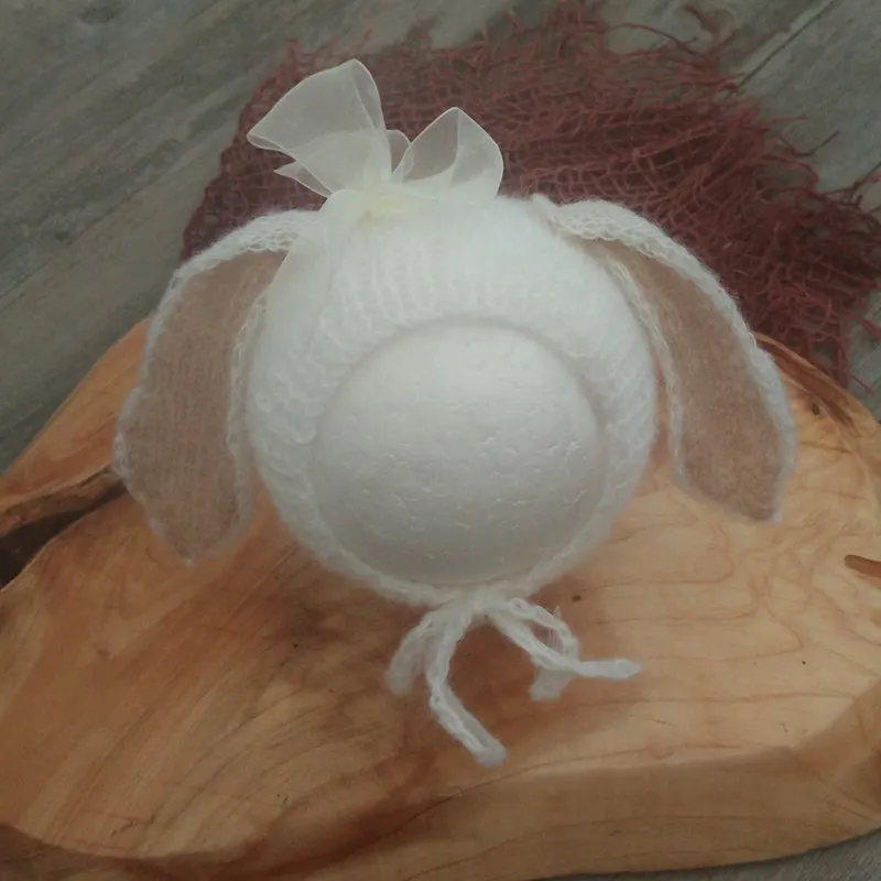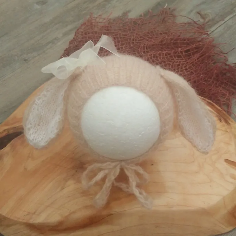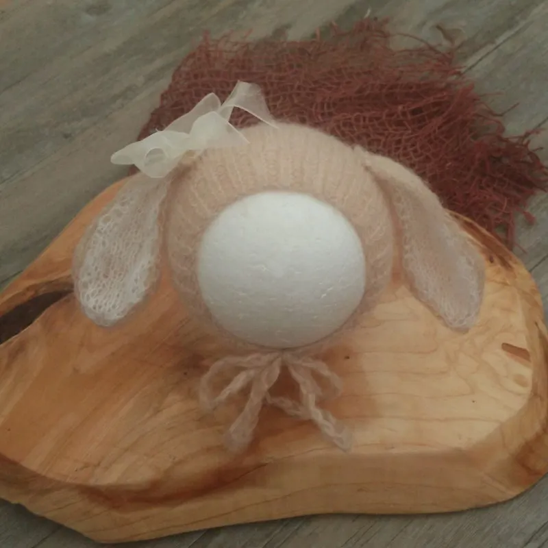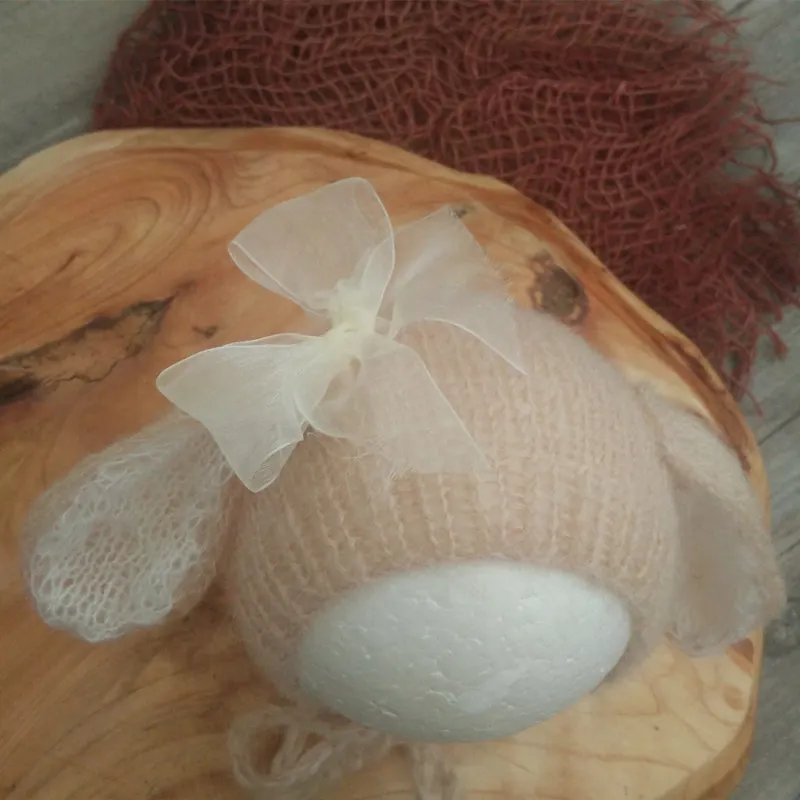 Детская шапочка с большими ушками для новорожденных, мохеровая шапочка ручной работы