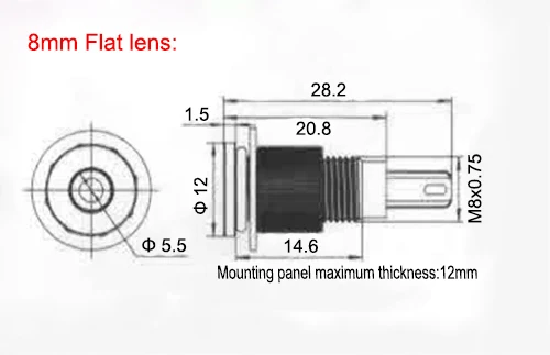 МеталлСветодиодныйИндикаторПараметры6,8,10...=ОткрытиеДиаметрA=ВогнутаяОбъективL=ВинтТерминалT=ВыпуклаяОбъективC=ШтырьТерминалDT = Большой объектив6ZSD.XX=ПроводаDM = большая линза и выпуклая линза8 мм8ZSD.X8ZSD.A.C8ZSD.PY.C8ZSD.DM.C8ZSD.DT.C10 ммИзготовление на заказЯвляетсяДоступно;Пожалуйста,СообщениеДляСША.10ZSD.X10ZSD.A.C12 мм