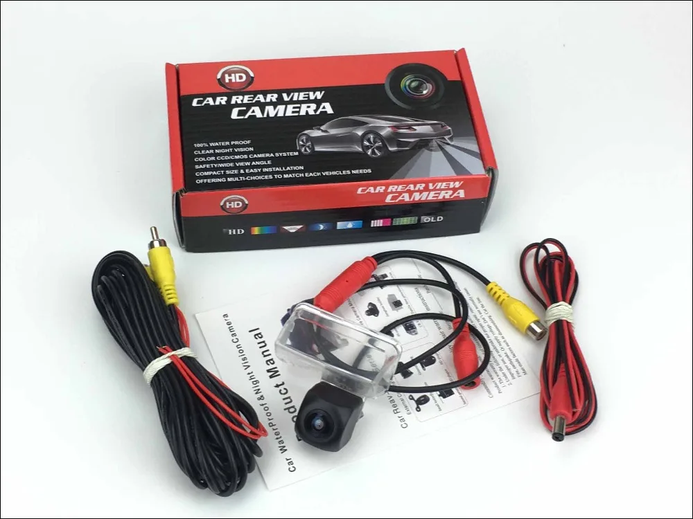 . Закрепите камеру там, где был светильник номерного знака.. Подключите встроенный светильник номерного знака камеры к тому месту, где был подключен светильник номерного знака, чтобы получить питание. Подключите питание камеры к тормозным огням-красный провод к положительному и черный провод к отрицательному.. Подключите видео кабель камеры к удлинительному шнуру.
