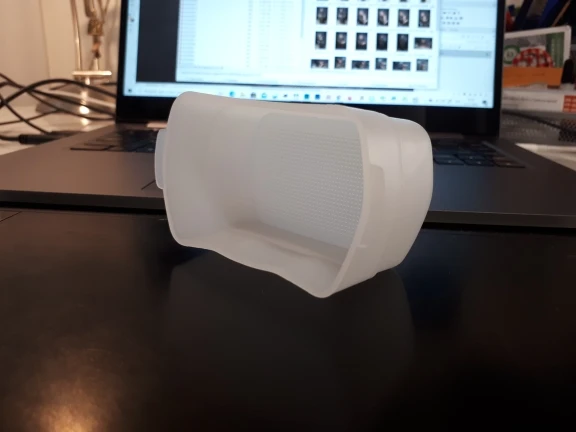 Хороший пластик, изготовлен добротно. Продавец отправляет быстро и пакует с дополнительной защитой. Довелось опробовать на паре съёмок, в ряде ситуаций(нет возможности смягчить свет -отразить свет от стены, потолка или отражателя) в основном во время репортажа - этот рассеиватель очень полезен.