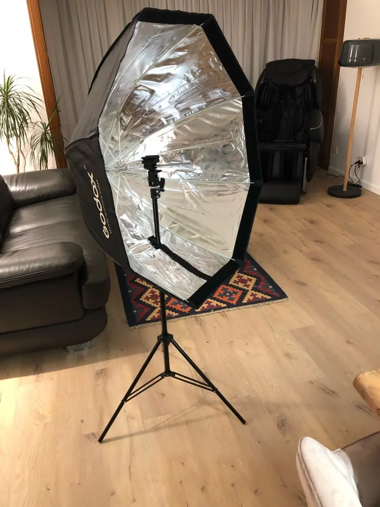 Диаметр отверстия 95 см, а с серебристым отражателем внутри и передней белой крышкой, он очень отлично подходит для speedlite.