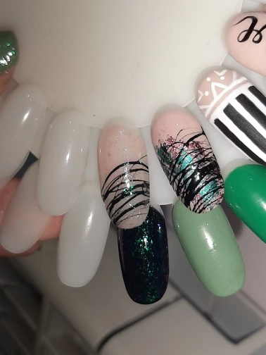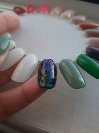 Это так красиво. Это многоцветное изделие, но оно хорошо и массивно в этой смеси. Если вы просто хотите гель aurora, номер 8 идеален. Это дополняет множество стилей. Я не могу дождаться, чтобы поиграть с ним и увидеть, что я приношу. Также он высыхает без липкого слоя, так как это верхнее пальто.