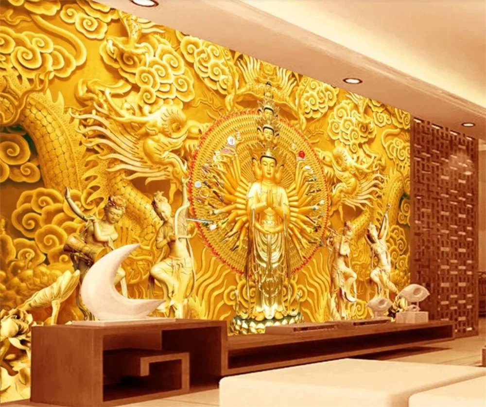 Beibehang пользовательские обои 3d фрески Золотой инвалидов Guanyin рельефные обои для гостиной спальни фоновые настенные картины 3d обои