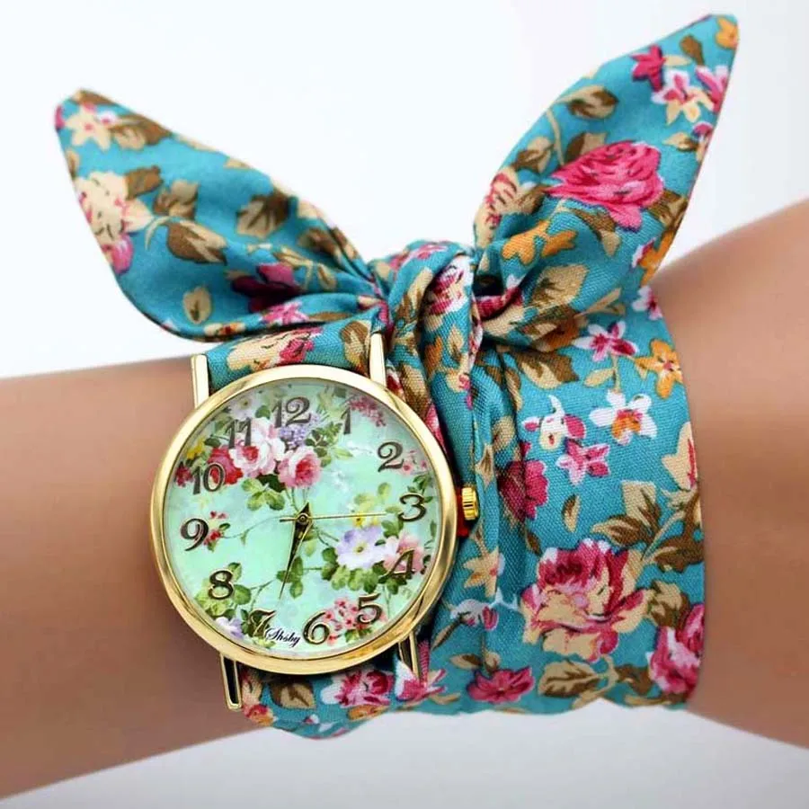 Shsby брендовые уникальные женские наручные часы с цветочным рисунком, модные женские наручные часы высокого качества, часы из ткани, милые наручные часы для девочек