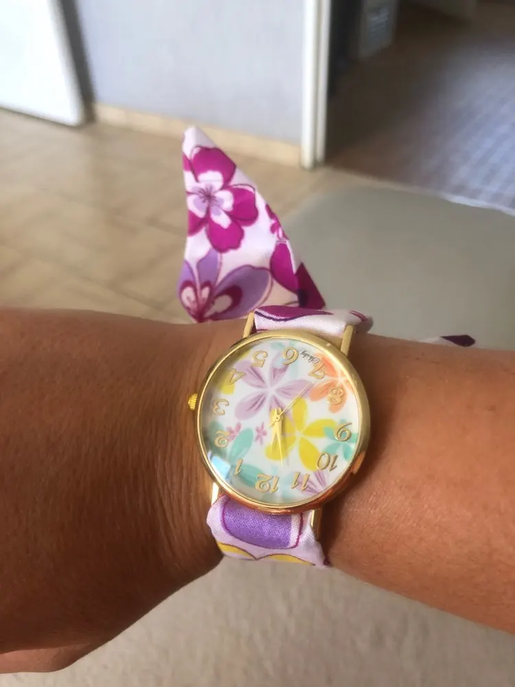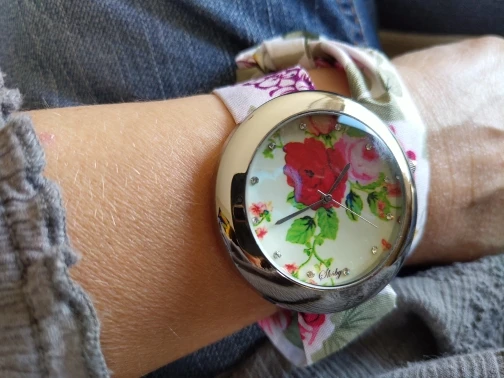 Jolie montre avec de jolis motifs fleuris mais j'aurai mis un bracelet tissu moins fleuri. Livraison rapide.