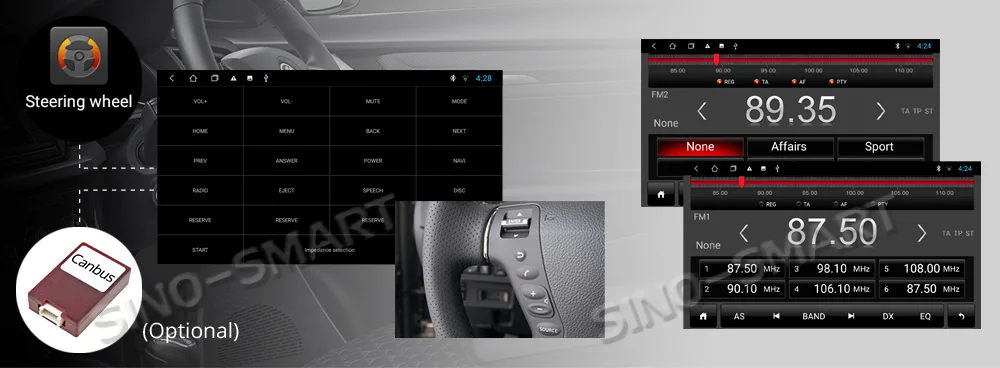 2. Радио с RDS (во всем мире радиочастота, Слушайте радио и навигацию одновременно)3. Поддержка управления рулевым колесом (нажмите приложение управления, чтобы установить или контролировать canbus Нет необходимости настройки)