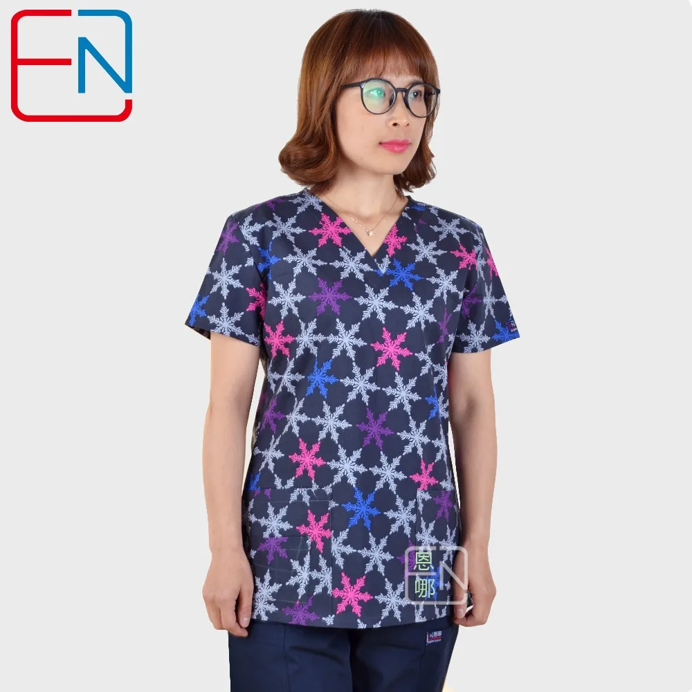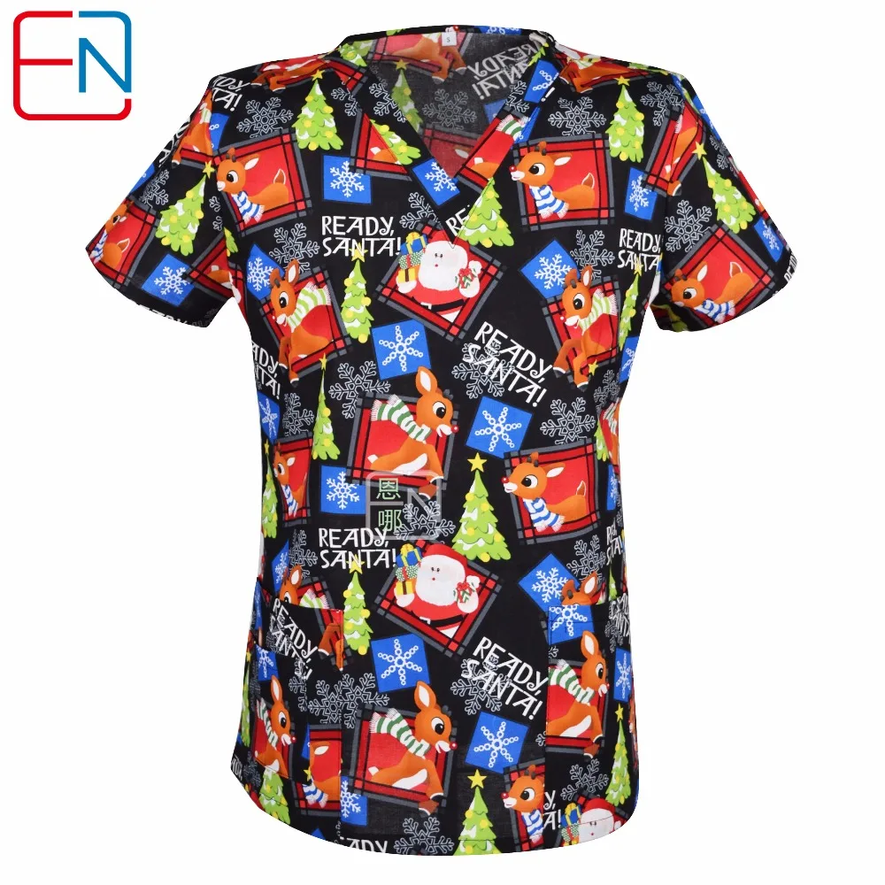 Медика Скраб Топы Скраб Униформа 100% принт хлопок Рождество дизайн медицинская униформа