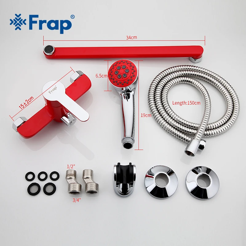 Смеситель для душа Frap, винтажный, красный, настенный, 35 см