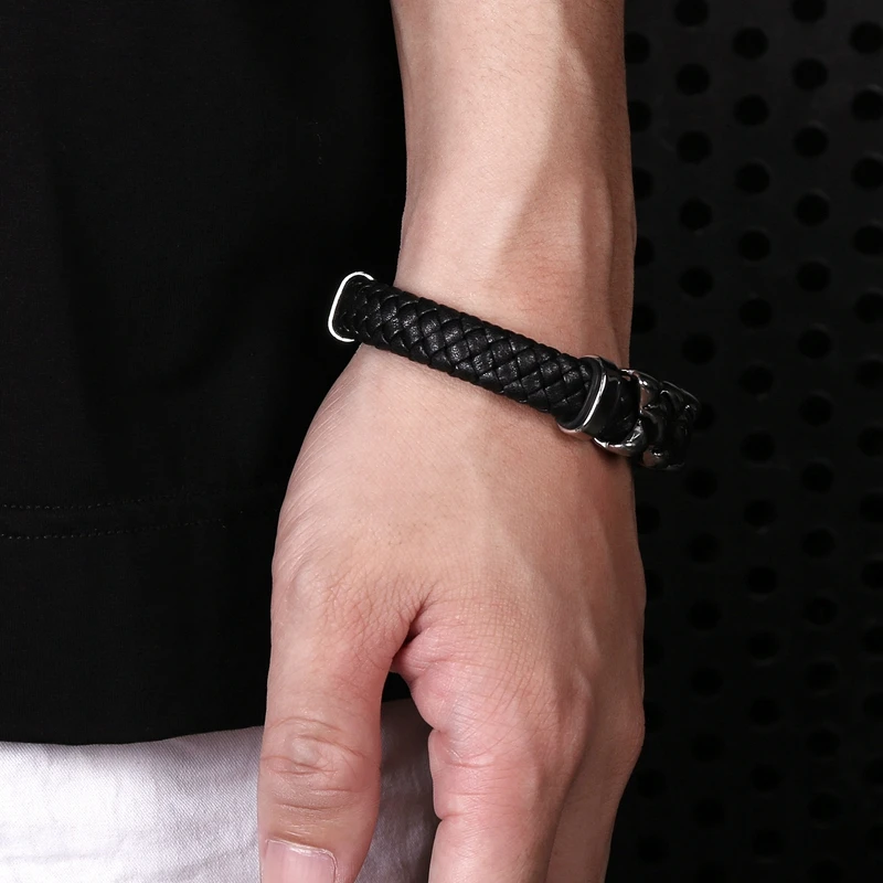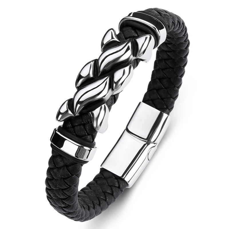 Браслет мужской кожаный плетеный, из нержавеющей стали, магнитный, ...