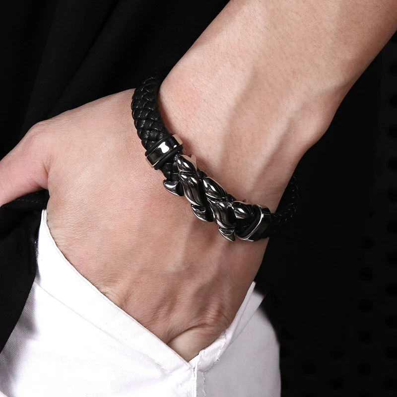 Модные мужские браслеты, плетеные кожаные браслеты из нержавеющей с...
