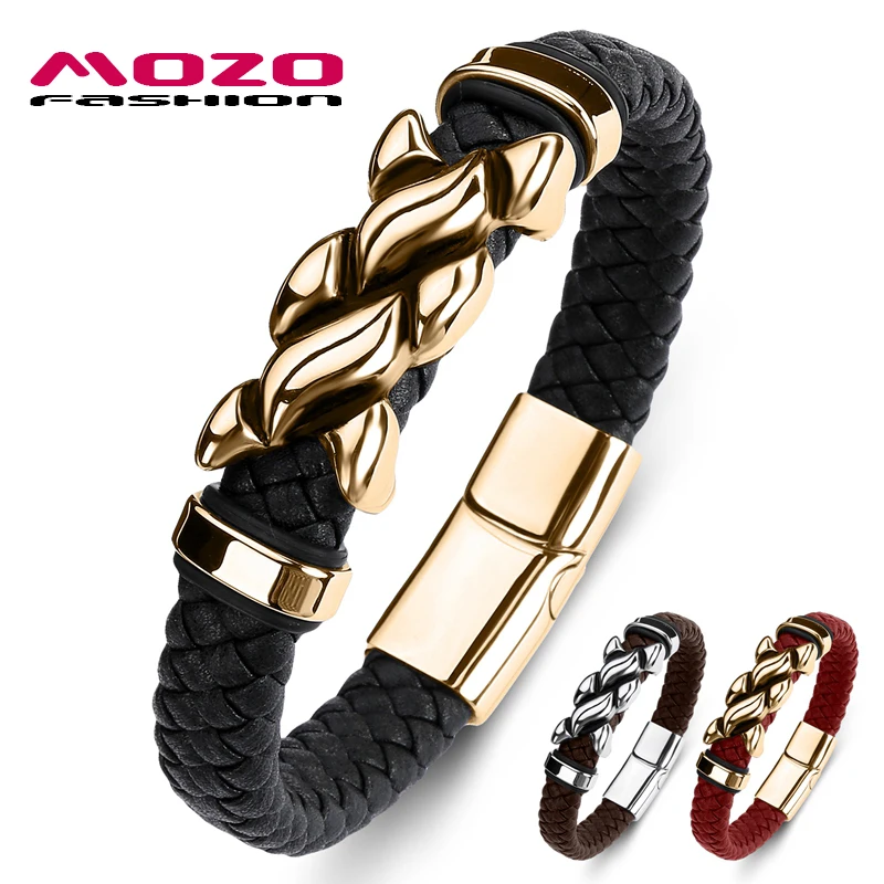 Модные Классические мужские браслеты MOZO 2021, браслеты из натурал...