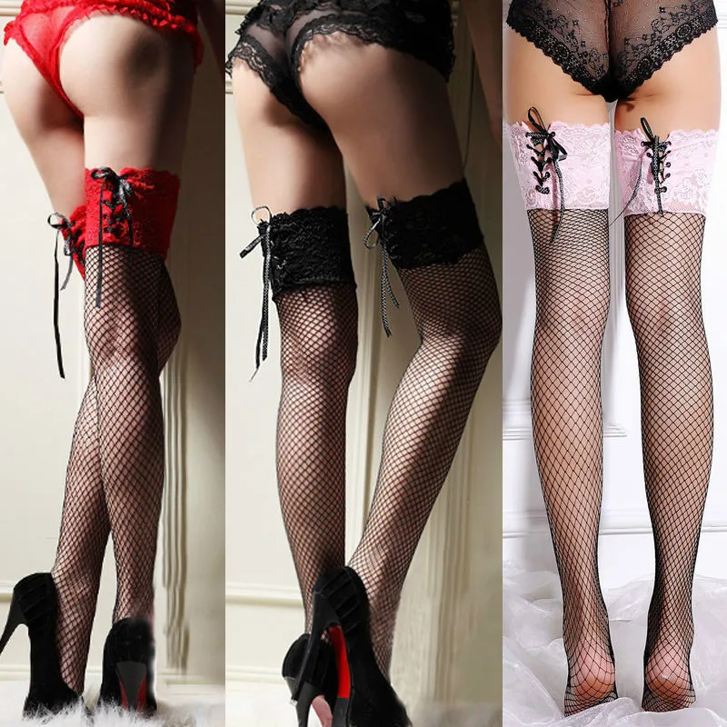 Чулки Женские сетчатые выше колена, красные, черные, белые, розовые