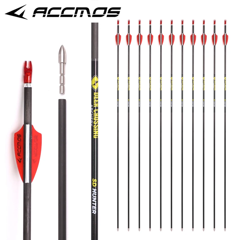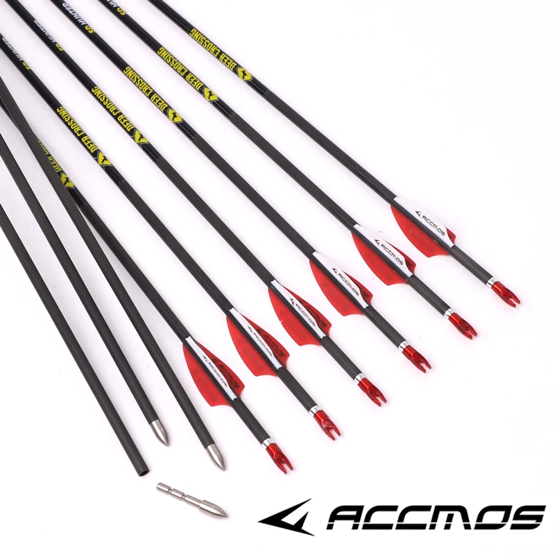 Стрелы из чистого углеродного волокна 612 шт., стрелы для стрельбы из лука и охоты, 250300350400500600700 ID, 800 мм, 31 дюйм
