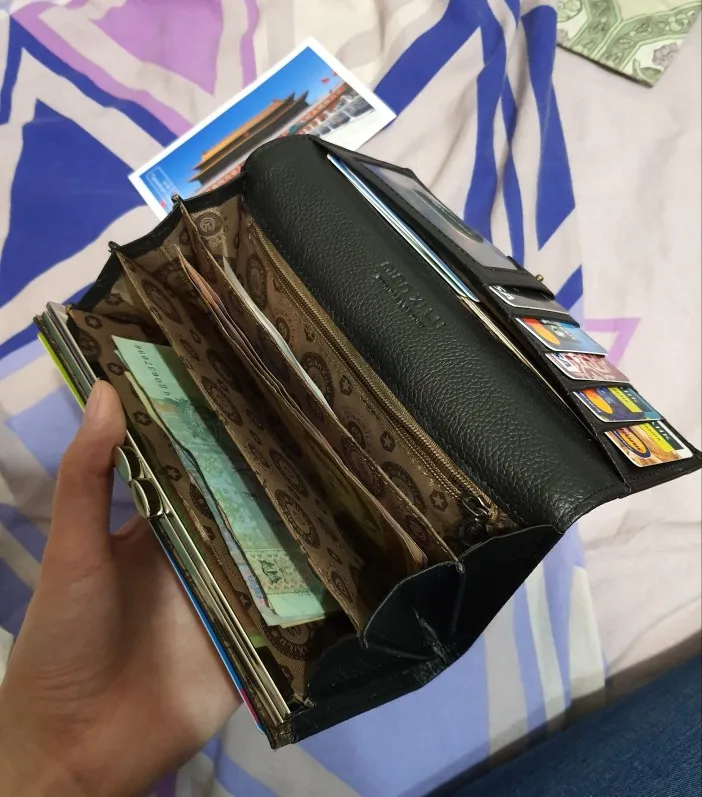 В одно из ОПС г.Барнаула процелофаненный пакет пришёл на 30 день после списания за данный кошелёк денег с банковской карты. Упаковка в процессе его пересылки повреждена не была. К сожалению продавец отправил приобретённый в его магазине кошелёк аж на 10-й день, а на 7 день прислал трек-номер, поэтому оценка плохо. Данный кошелёк заказывала моя супруга и после вскрытия упаковки и его осмотра, установлено, что пошил он в общем и целом довольно неплохо. Швы ровные, торчащих ниток нет, Отделений и под бумажные купюры аж целых 3, для монет в нём имеется 2 отделения, которые довольно надёжно запираются. К сожалению приходится констатировать то, что он точно изготовлен не из натуральной кожи, поскольку имеет небольшой посторонний запах и запах этот свидетельствует о том, что материалы, которые были использованы для его изготовления - искусственного происхождения.