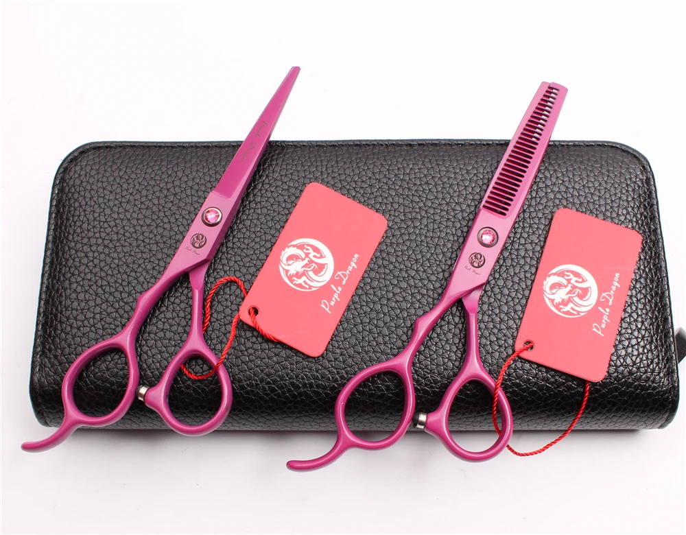 Z8001 6 "Япония сталь фиолетовый дракон розовый Профессиональный парикмахерский клипер ножницы для стрижки филировочные ножницы левосторонний набор ножниц для волос