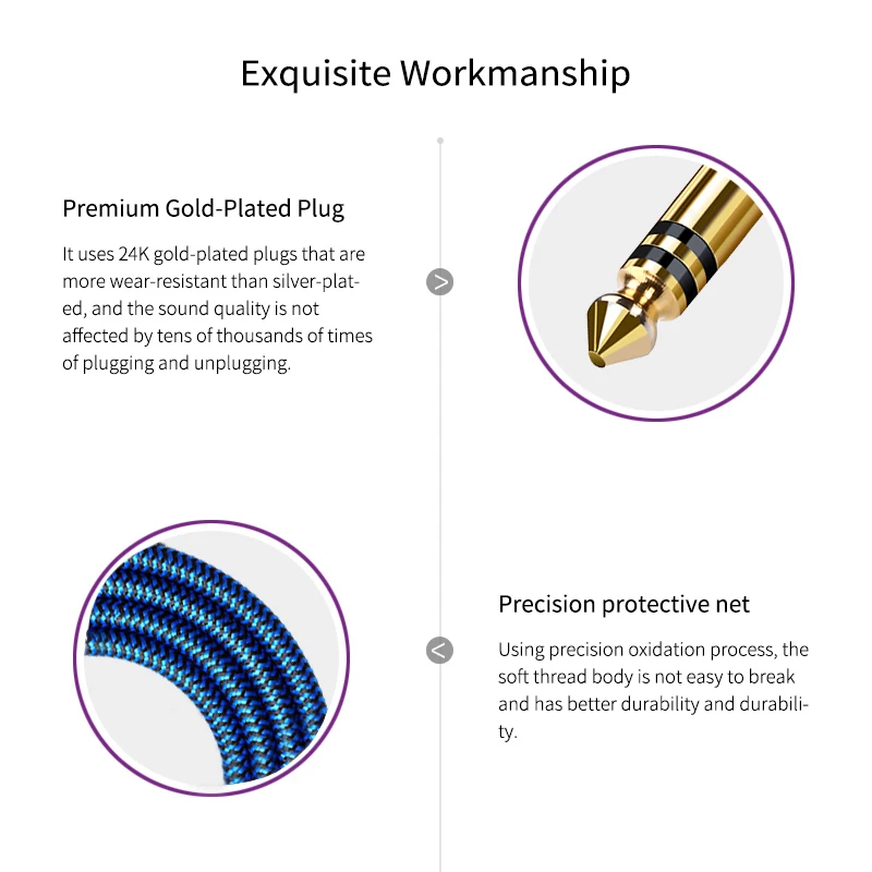 > Кабель основной Проводник:Высокое качество OFC медный провод проводника, двойное экранирование. Обеспечение высокого качества аудио или передачи сигнала и принесет вам лучший звук.