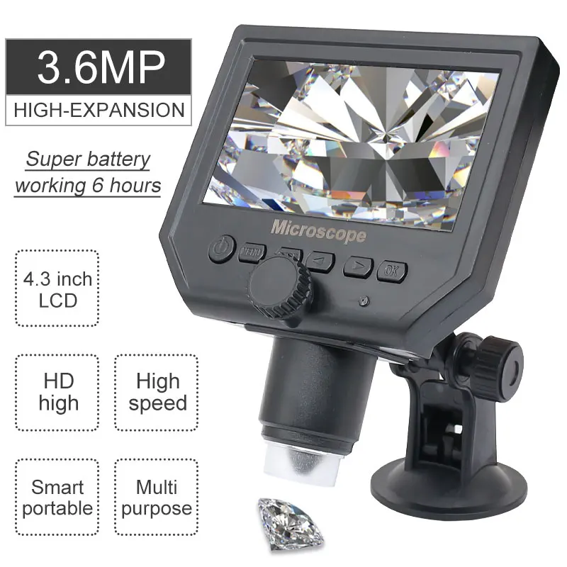 600x3,6 Мп USB цифровой микроскопалюминиевый сплав Стенд 4,3 дюйма HD LCD видео микроскоп дисплей для ремонта печатных плат