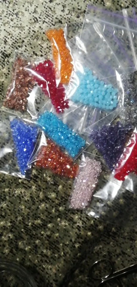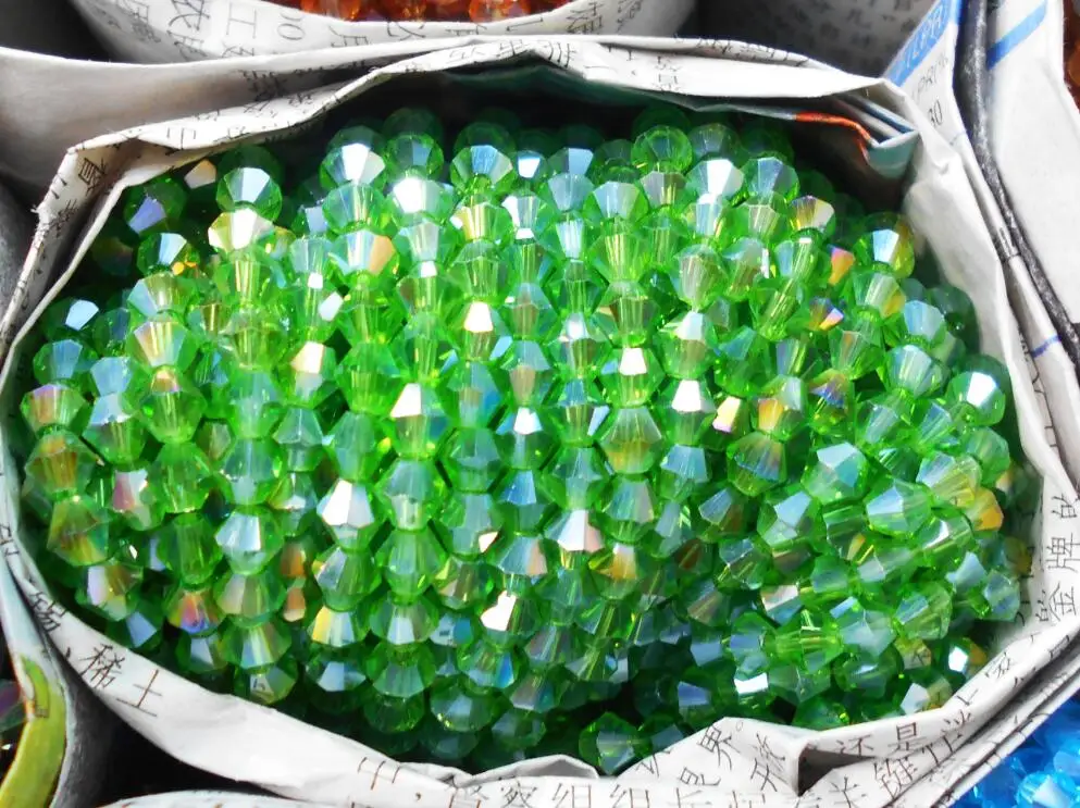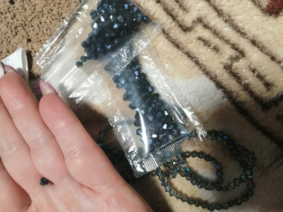 Отличные биконусы, ровные, красивые, с ровным переливом. Пришли довольно быстро, на нитке. Рекомендую.