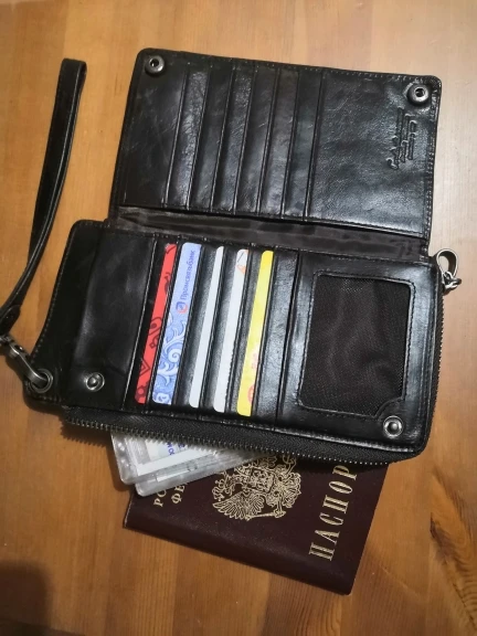 отличный кошелек , конечно крупный смартфон в него не поместится. Отделение под карточки продуманно не совсем хорошо , при полном заполнении не удобно закрывать и держать , боковой карман становится практически бесполезным . Визуально кошелек выглядит отлично , красивый , лучше чем на фото. Жалко что эргономичность и удобство не проработано , но китайцам эти понятия наверное не даны , все так у них тяп ляп . в целом покупка хорошая , можно брать .