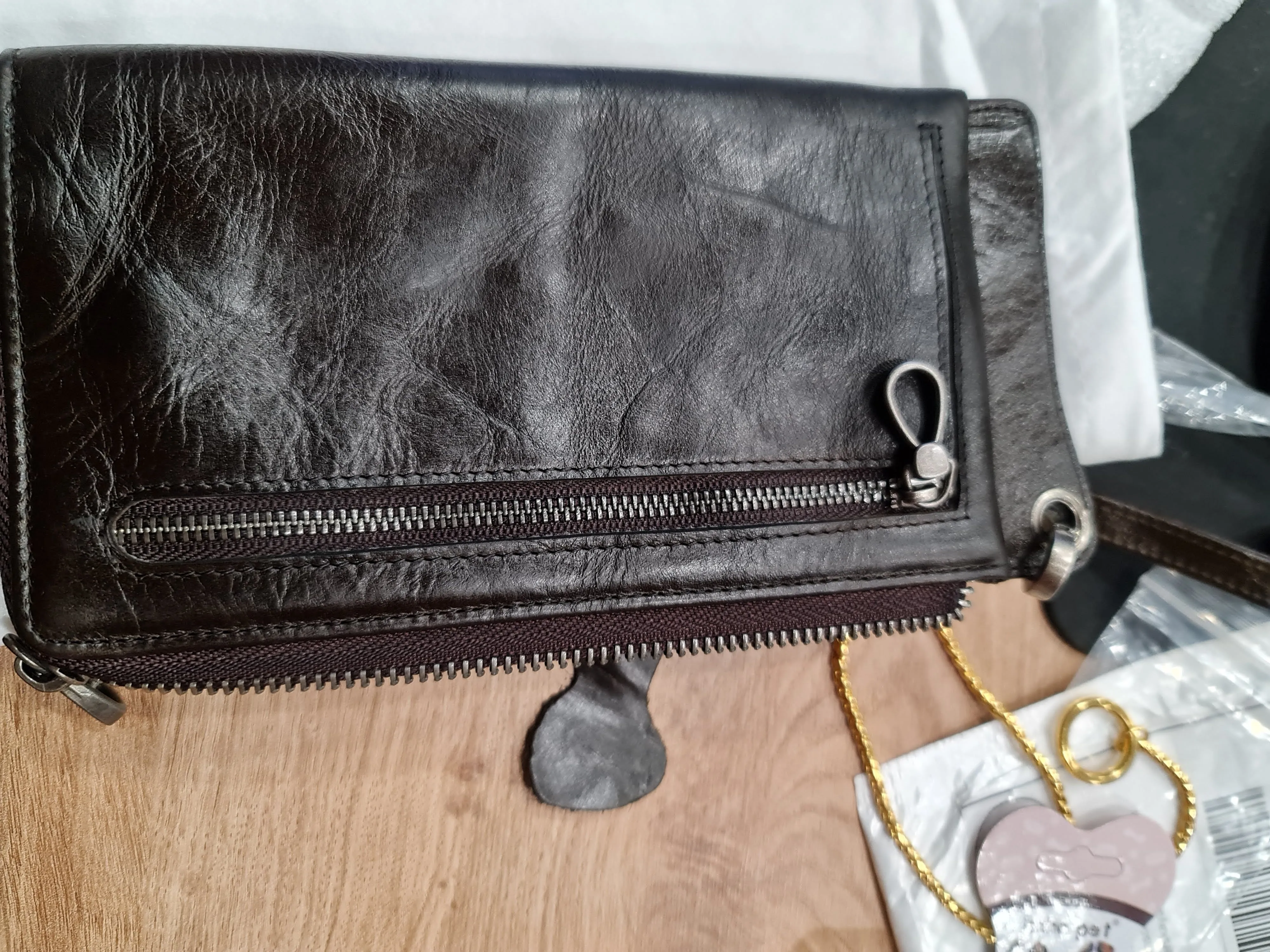 Кошелек не понравился, цвет не шоколадно-коричневый, как на картинке и в видео, а грязно-коричневый с болотным оттенком, слегка потерт и с царапинами, будто кто-то его носил. Покупали, чтобы носить на шее, неудобно оказалось. а возвращать целая история. Так ждали его, очередные ожидания и реальность, жалко.
