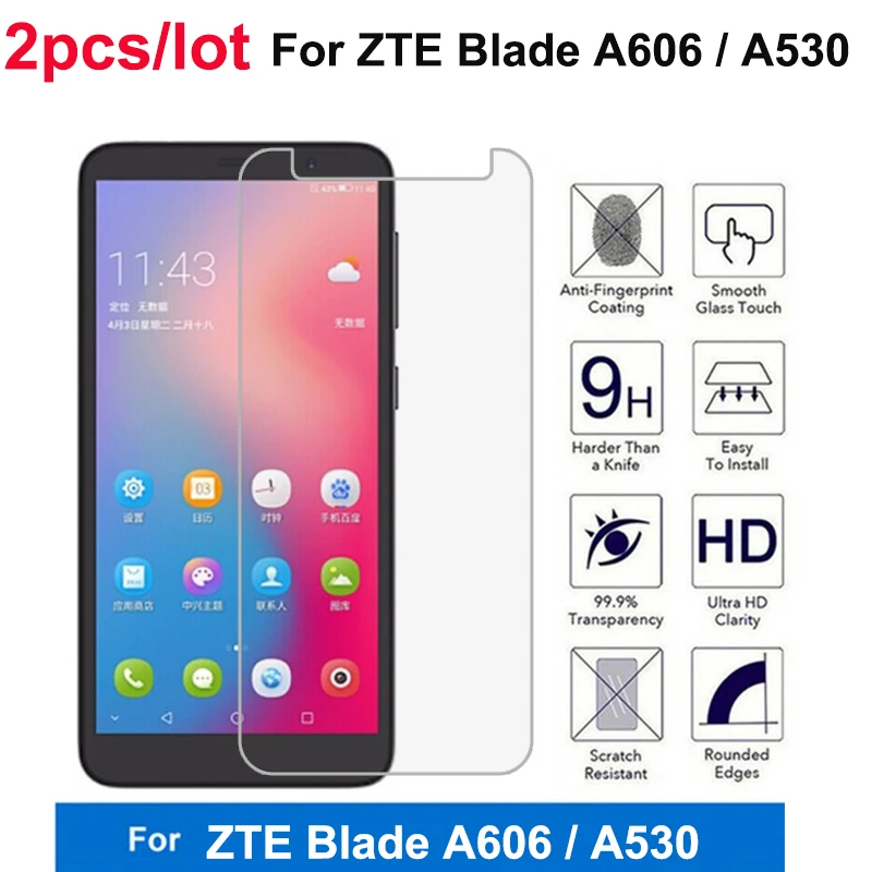 2 шт. для ZTE Blade A606 защита экрана 100% оригинал 9H Закаленное стекло пленка для телефона для ZTE Blade A606 A530 5,45 дюймов Стекло корпуса