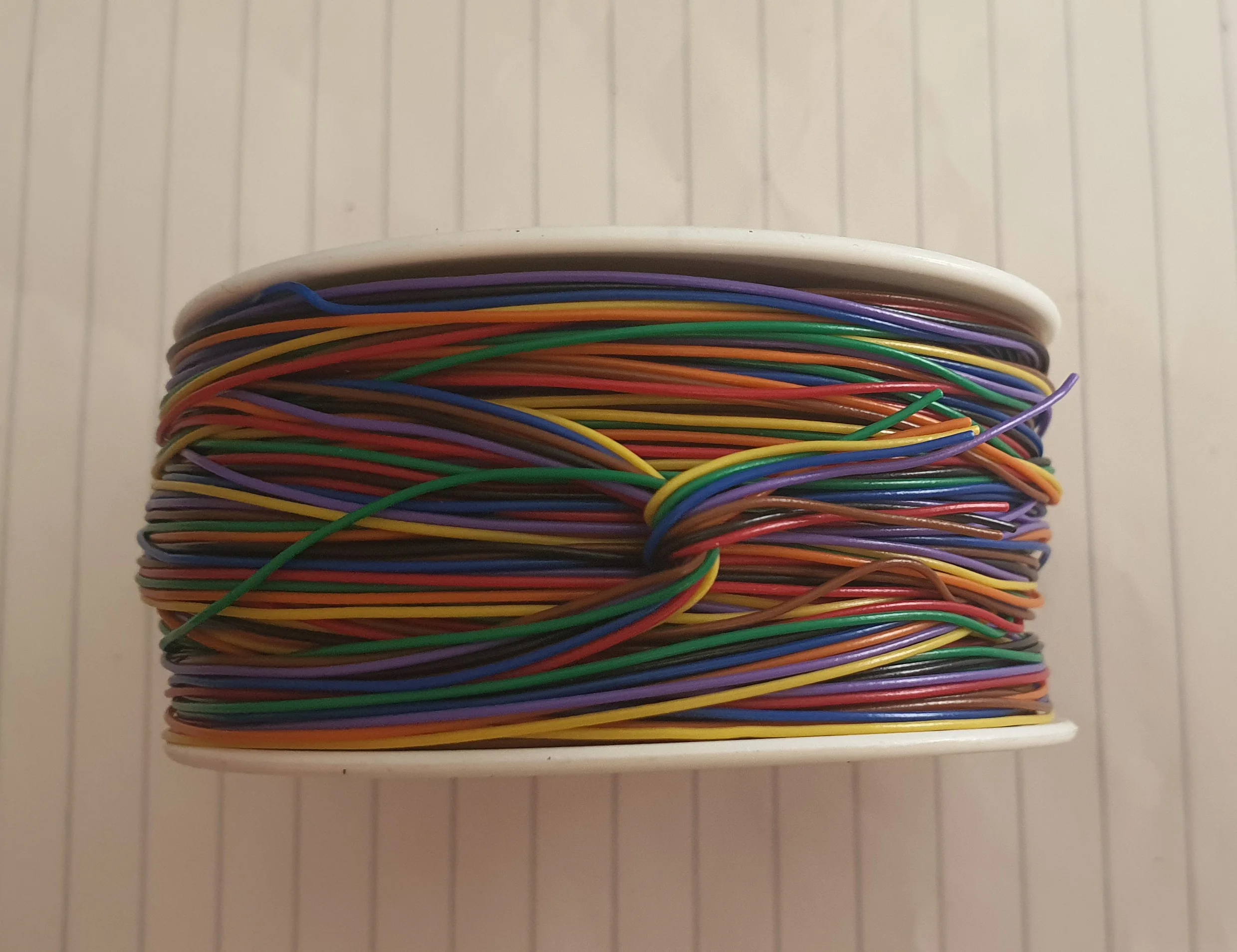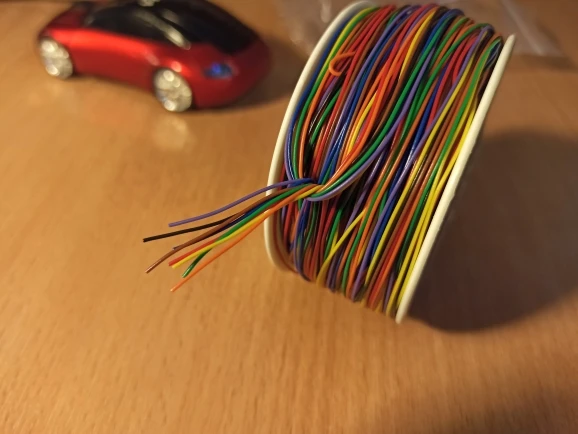 Обман на обмане! В реальности это не 30AWG, провод одножильный (одна проволочка, 0.21mm). Сопротивление 489mOhm/m. Технически он между 31AWG и 32AWG. С длинной тоже развели! Общий вес катушки 110g. Метр провода в изоляции весит 0.8g. Так что длинна провода не может превышать 138m. А ещё вес самой катушки! Думаю реальная длинна около 100m. Намотка на катушку - абы как. Знал бы - не купил. Проверил AxGxP.