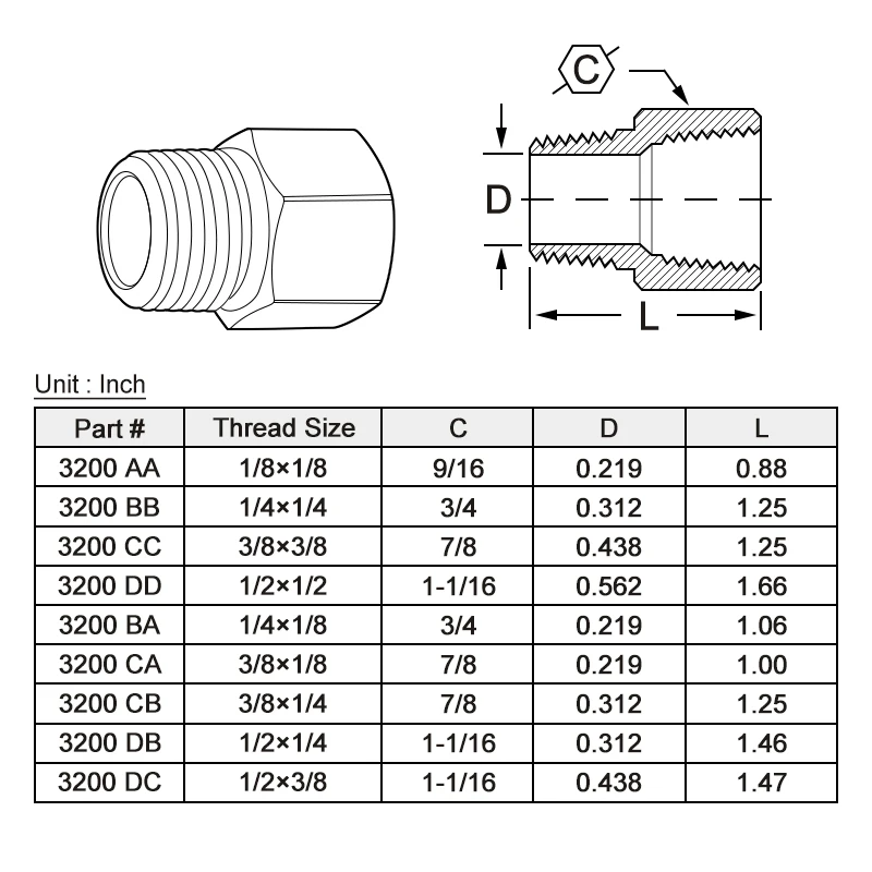3200 АА: 1/8 "Женский до 1/8" Мужской