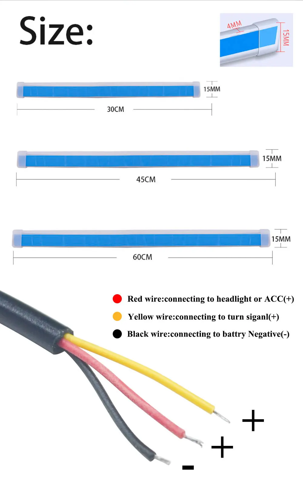 Дневные ходовые огни RXZ, 30-60 см, гибкие, универсальные, водонепроницаемые, 12 В