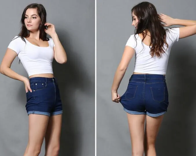 Женские джинсовые шорты с завышенной талией, синие хлопковые шорты из денима, уличная одежда, размера плюс 32, 33, 34, 36, 38, 40, лето 2020
