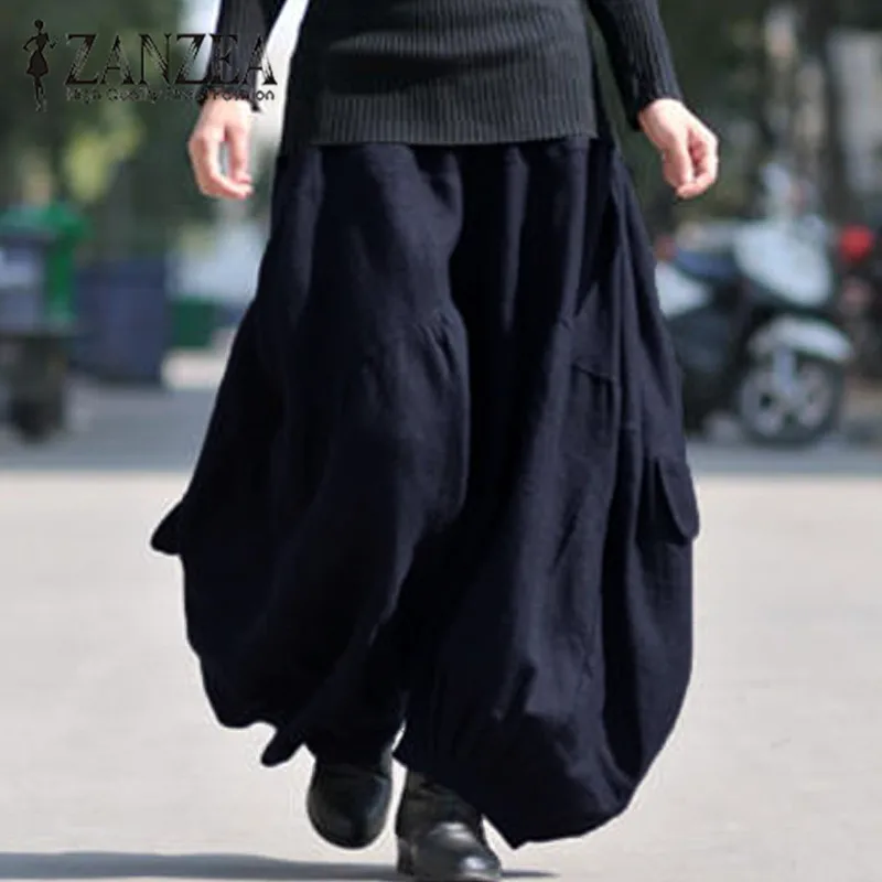 Модные женские осенние шаровары ZANZEA 2022, хлопковые льняные брюки с перекрестными штанинами, брюки с высокой эластичной талией, мешковатые длинные брюки большого размера