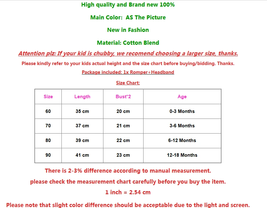 Из-за ручных измерений возможна погрешность в 2-3%.Прежде чем купить эту товарную позицию, просим тщательно свериться с таблицей размеров.1 дюйм = 2,54 см