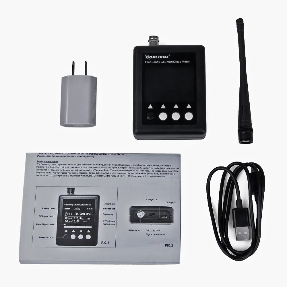 Частотомер, способный измерять параметры частоты раций непрерывного несущего сигнала, с индикатором мощности сигнала. Это Предпочтительный инструмент для обслуживающего персонала, тестовой частоты и мощности сигнала беспроводных энтузиастов.
