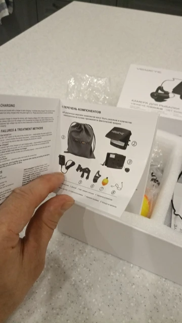 доставка была долгой, два месяца в красноярский край. продавец не может внятно объяснить ,где находится посылка, треки не отслеживались. отправили компанией СДЭК, в результате посылка сначала поехала во Владивосток, потом в Москву, потом хз ещё куда. получил на почте. отправителем числился г. Подольск. логику китайских друзей мне не понять никогда(((. камера отличная. маленькая, размером с навигатор. комплектность показана на фото. на двухметровой глубине днём видимость метра три- четыре. меню на русском, в лучших китайских традициях присутствует секретная опция " Re-se- тыщ" ( см фото). минус, это тонкий провод камеры. товар рекомендую.
