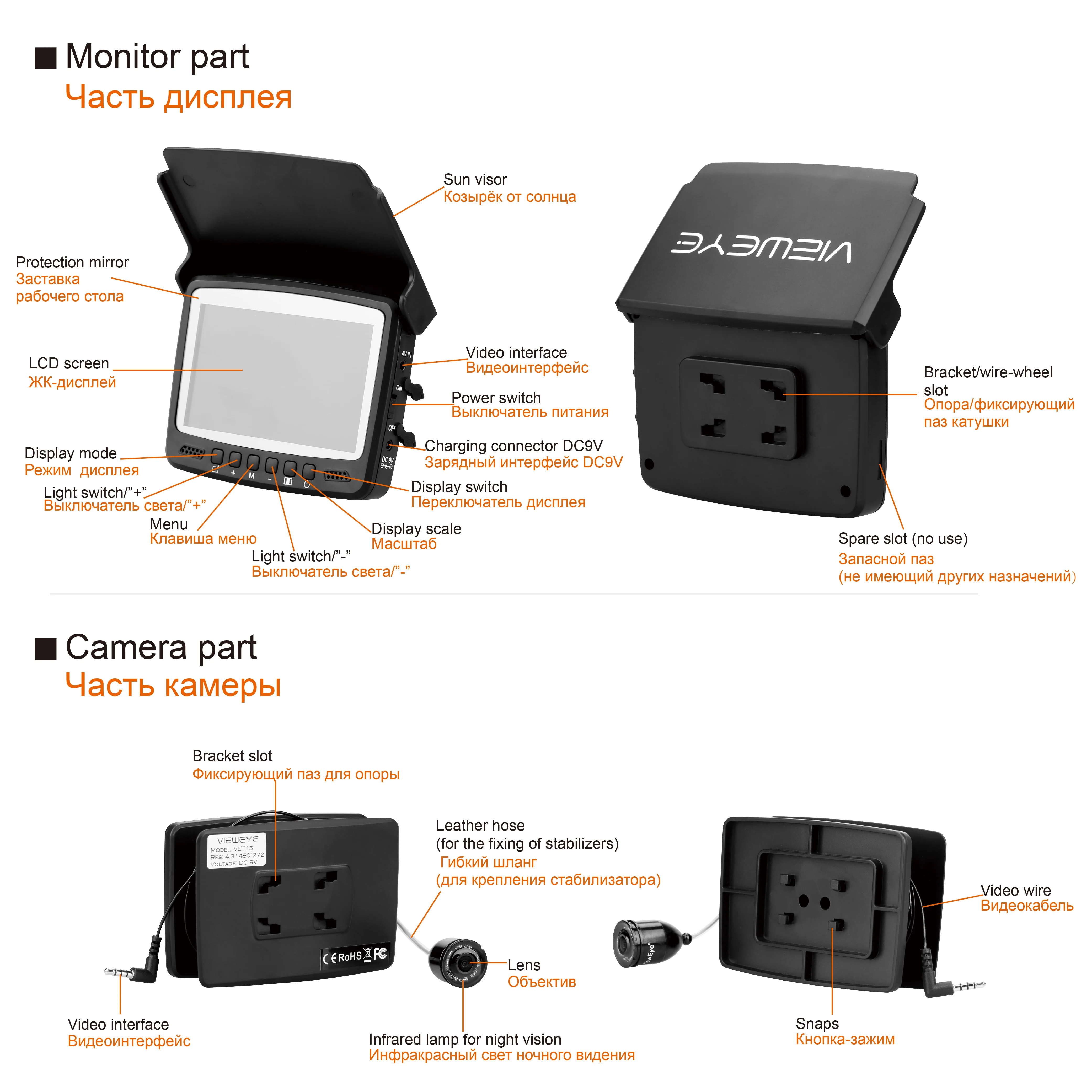 всё супер. комплектация полностью соответствует заявленной. доставка из Подольска в Томск заняла шесть дней. на корпусе и дисплее защитная пленка. штекер подключения камеры 90 градусов. в меню присутствует русский язык. но названия стандартных режимов настроек дисплея не переведены. присутствуют настройки яркости, контрастности и цвета дисплея, а так же пропорций картинки 16:9 и 4:3. ИК-подсветка выключается нажатием на "+" или "-". картинка хорошая. чувствительность тоже довольно хорошая, но при недостаточной освещенности, начинает "шуметь". при включении ик подсветки в темноте начинает высвечивать пылинки даже в воздухе. единственное что настораживает - диаметр кабеля. в остальном, за эти деньги, мне кажется, наилучший вариант.