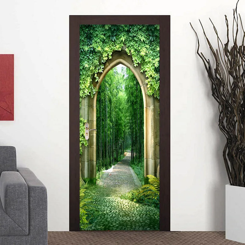 3D обои в китайском стиле, бамбуковая роща, пейзаж, фотообои, настенная дверь, наклейка, гостиная, кабинет, домашний декор, ПВХ обои для 3 D