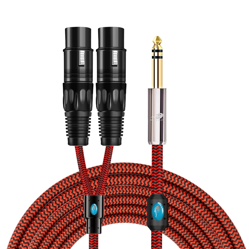 Этот 6,35 мм разъем для наушников с двойным XLR стерео аудио кабель подключает устройство с общей 6,35 мм ТРС женский порт к смесителю или аудиоустройство с XLR Джек.