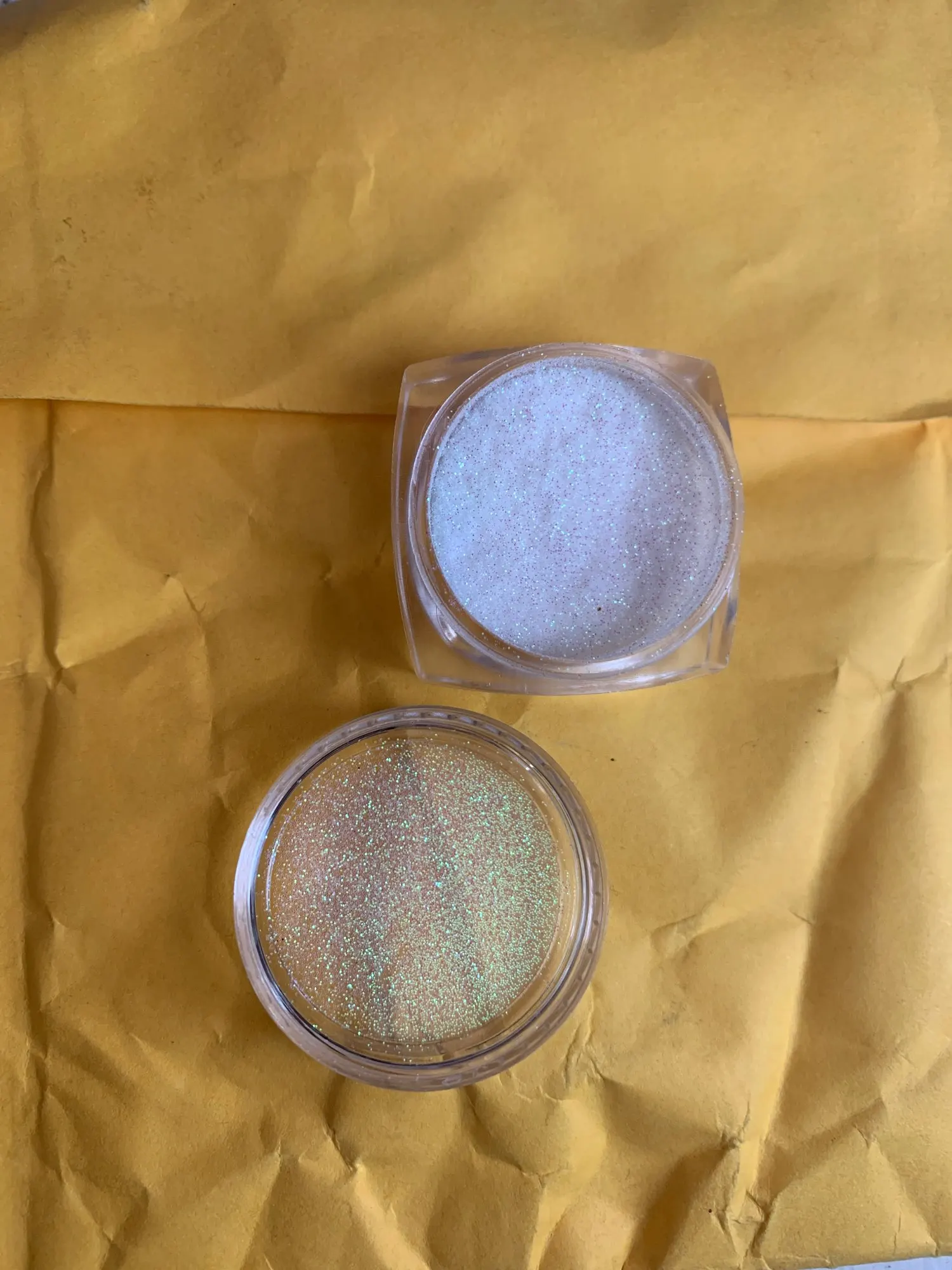 шло долго но пришло, в баночке блестки смотрится красиво, попробую дополню отзыв