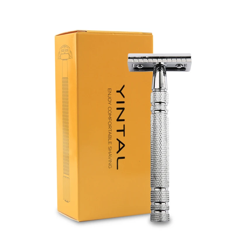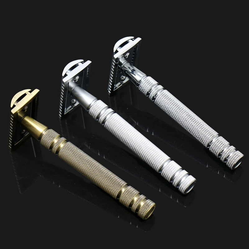 YINTAL Мужская бронзовая Классическая двухсторонняя ручная бритва с длинной ручкой 3 шт. Безопасная бритва яркое серебро
