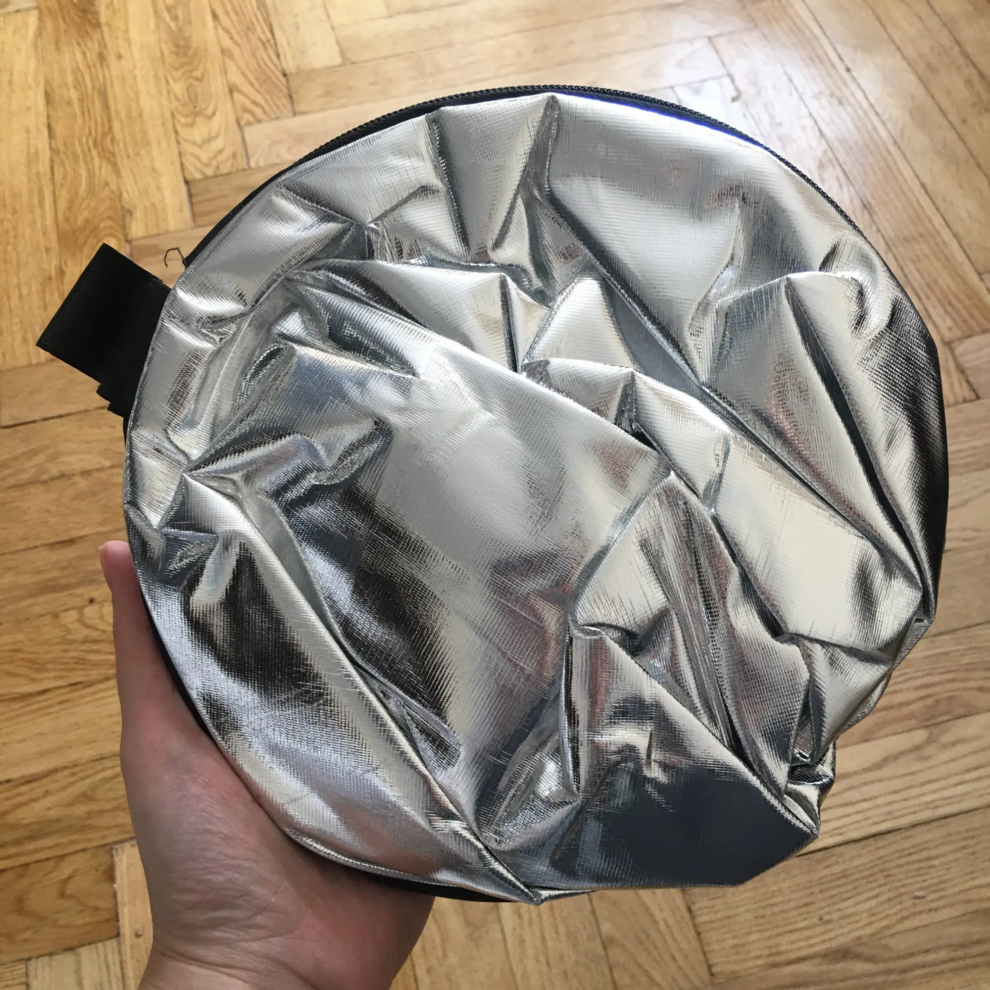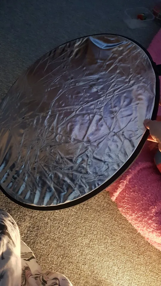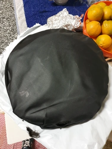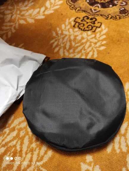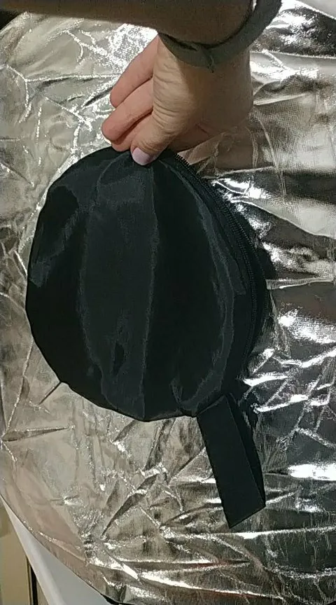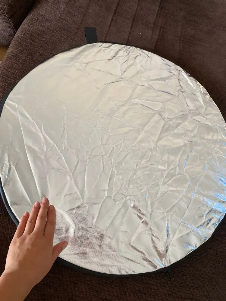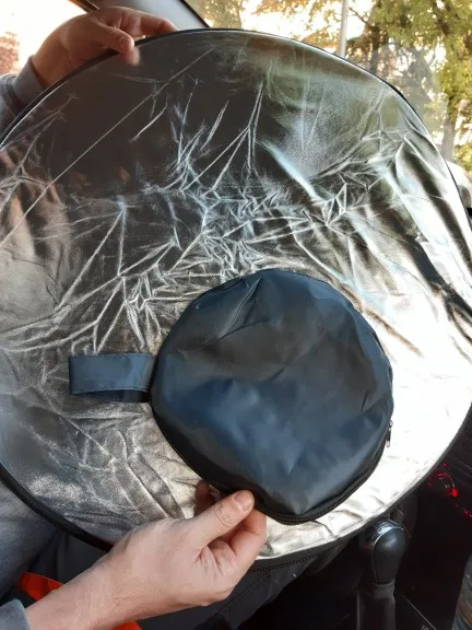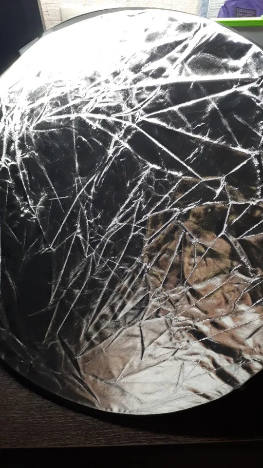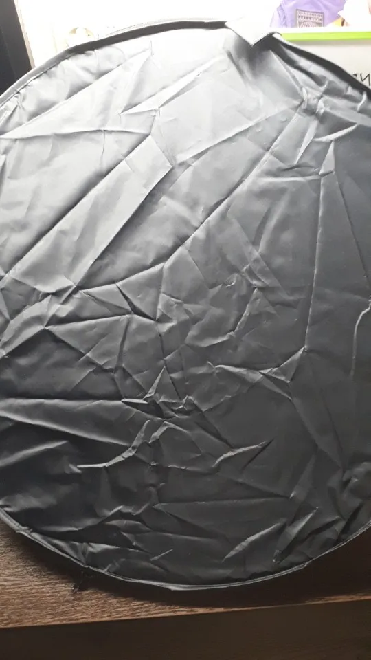 Отличный отражатель за такие деньги! Пришёл с кучей других посылок. Всё целое, ничего не воняет. Складывается легко, как и все отражатели.