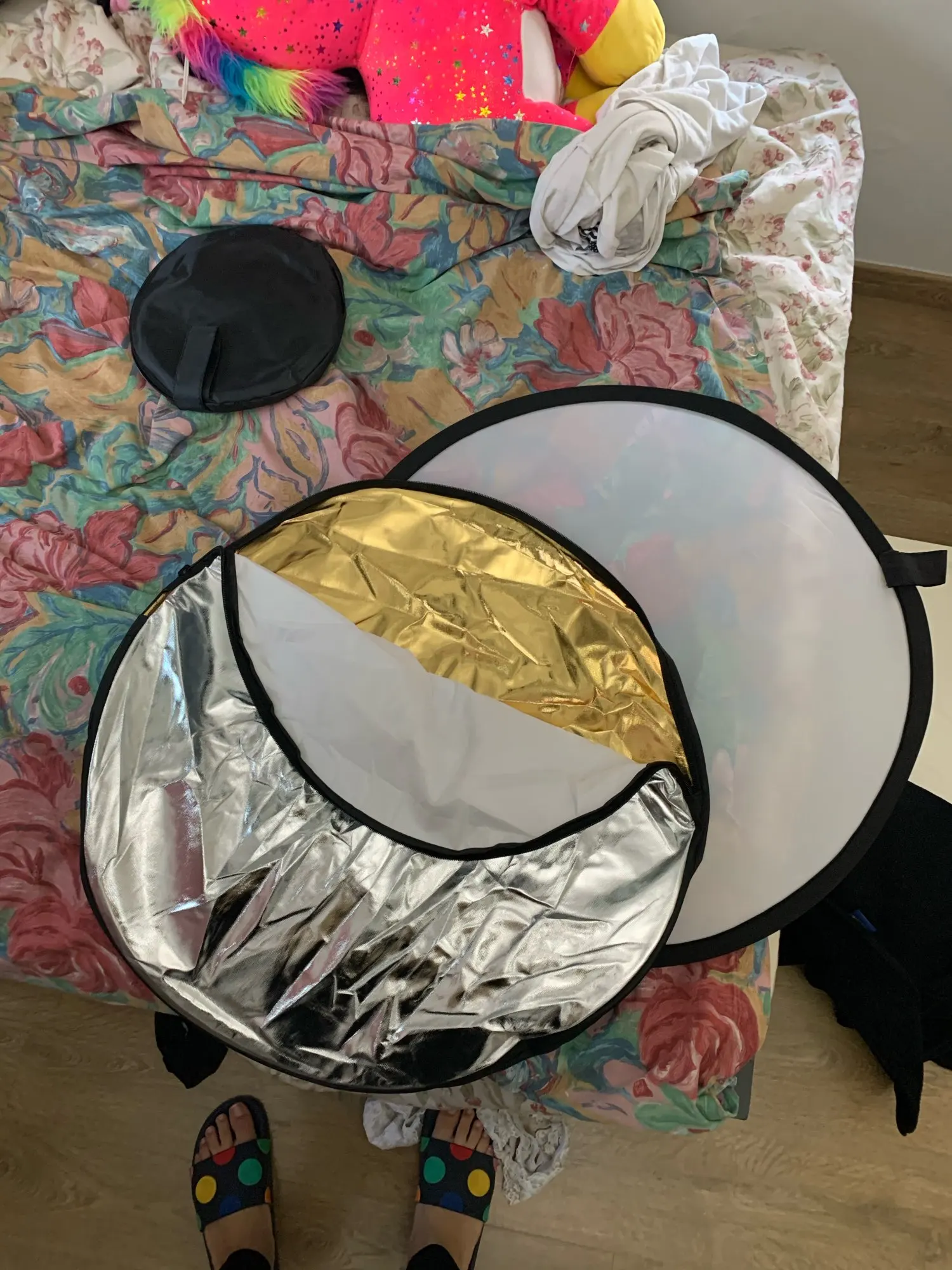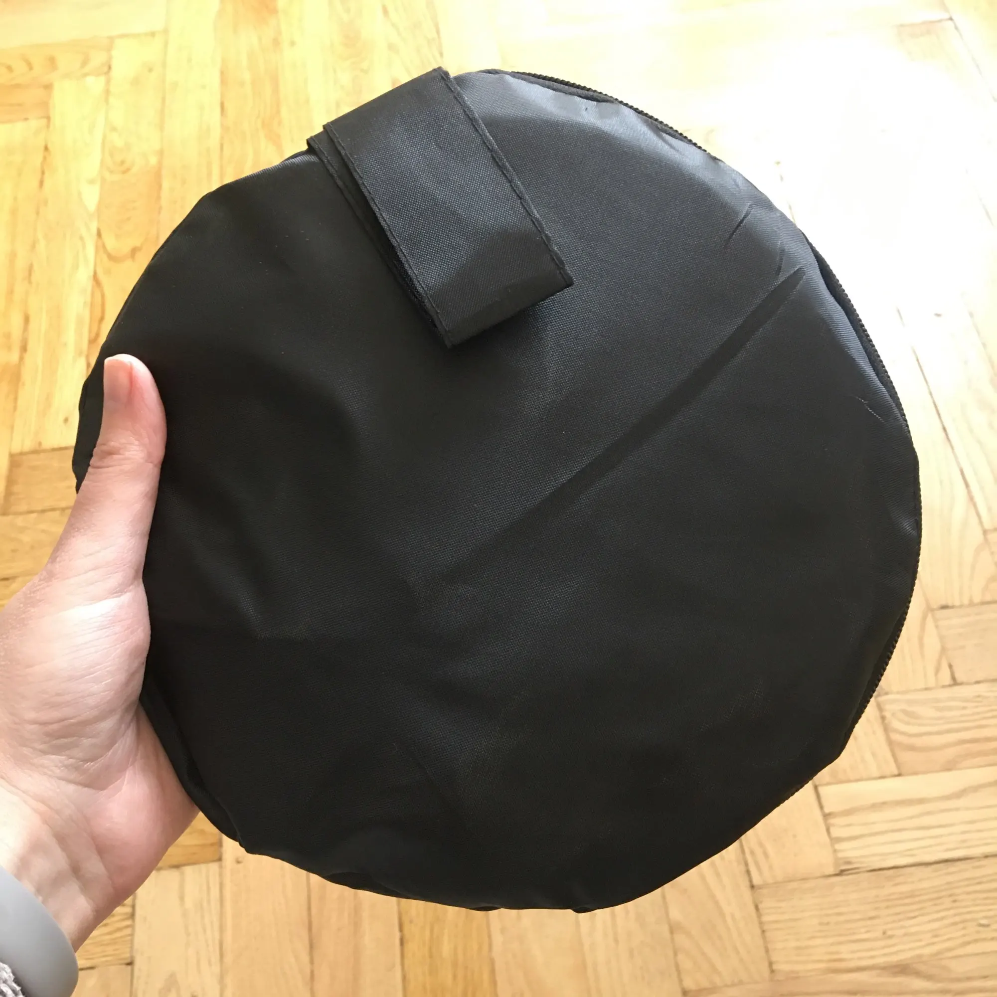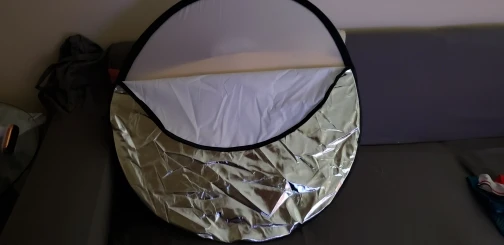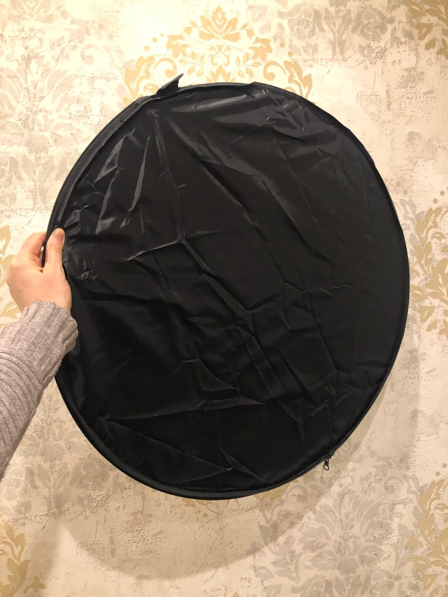 Отличный отражатель за такие деньги! Пришёл с кучей других посылок. Всё целое, ничего не воняет. Складывается легко, как и все отражатели.