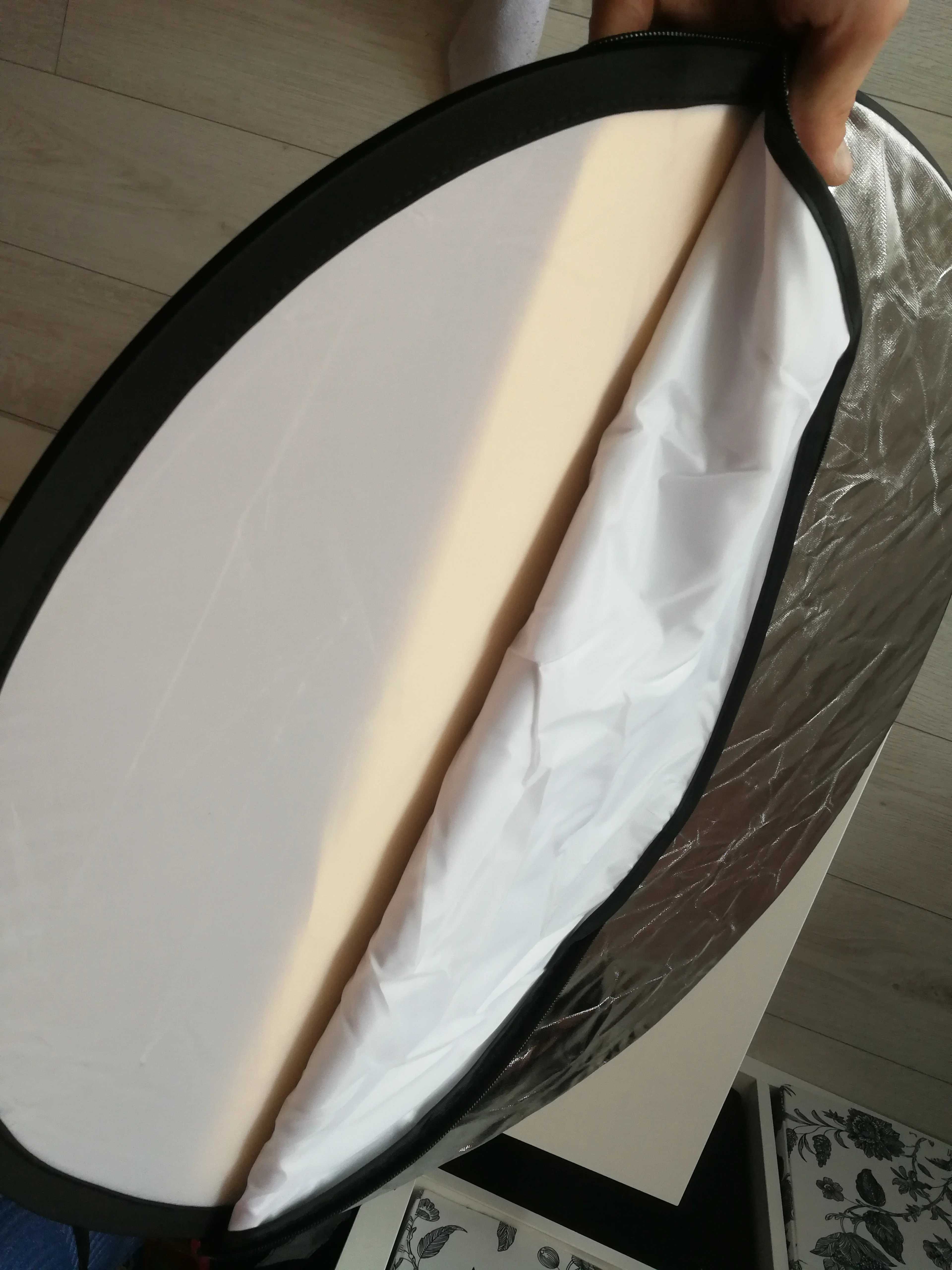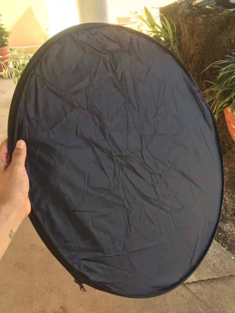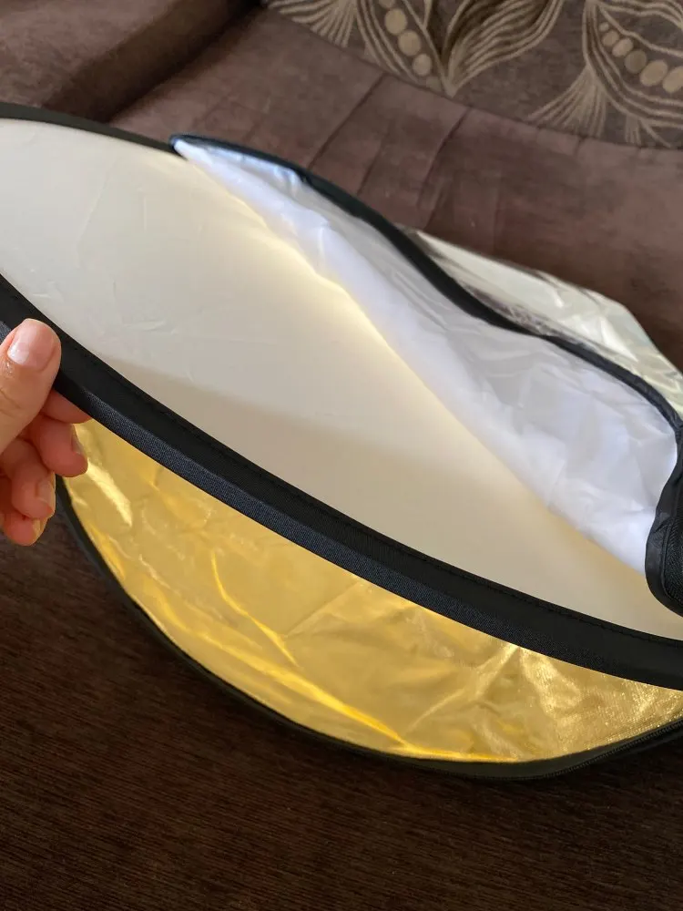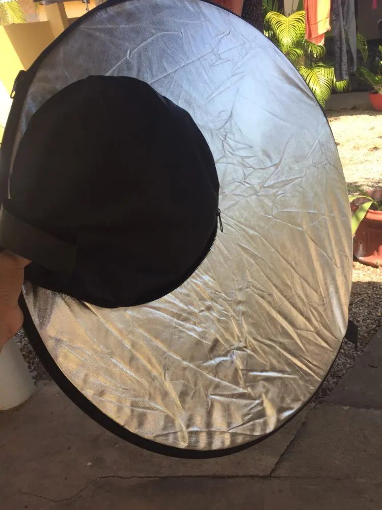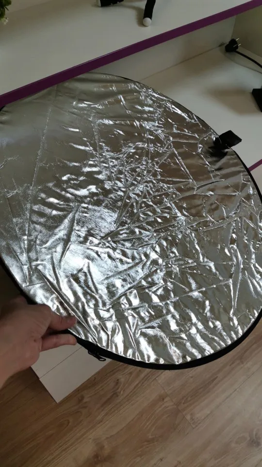 Отражатель пришёл в Киев очень быстро - через 2 недели с момента заказа! Дополнительной упаковки не было - только почтовый пакет и чехол самого отражателя. Всё выглядит неплохо и функцию свою выполняет - тем более, цена здесь очень хорошая. Размер как раз удобный для того, чтобы фотограф держал отражатель самостоятельно. Единственное, что немного смущает - это хлипкие молнии, с ними нужно обращаться аккуратно.