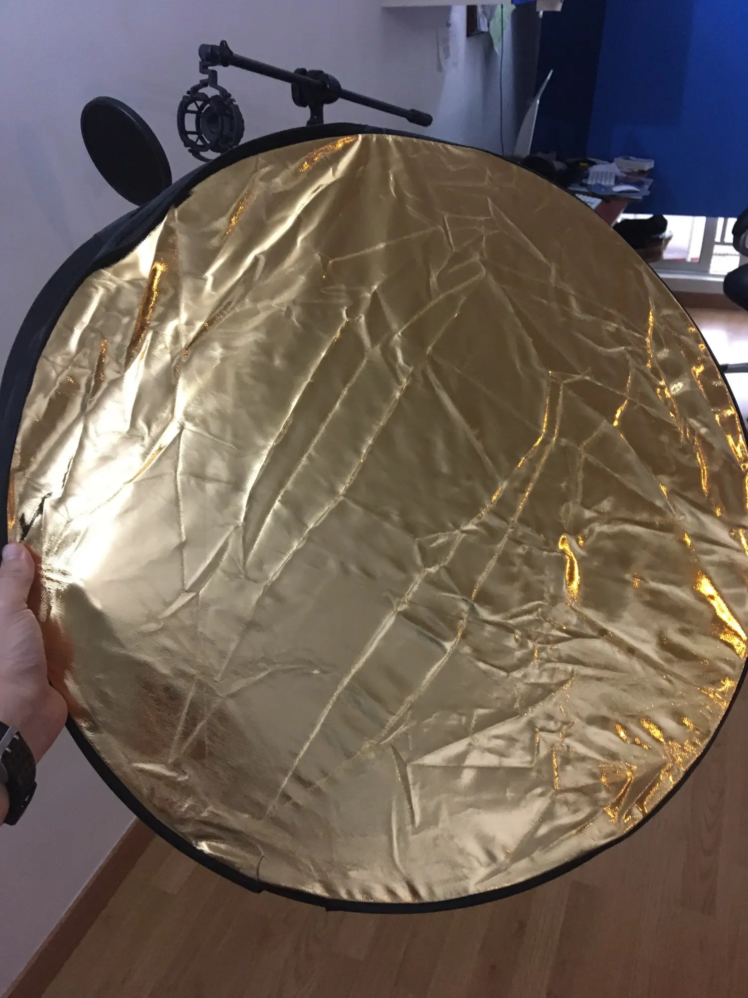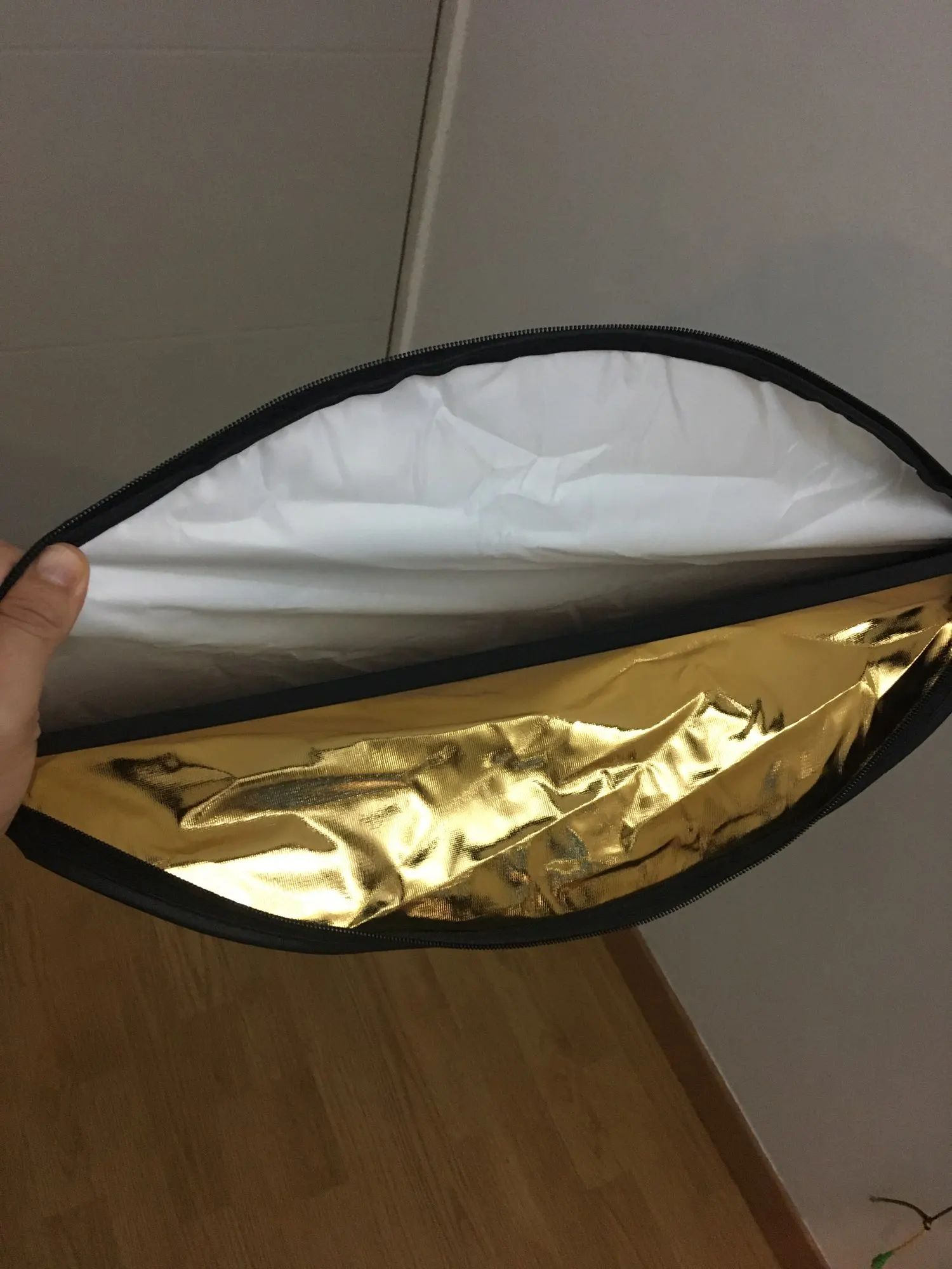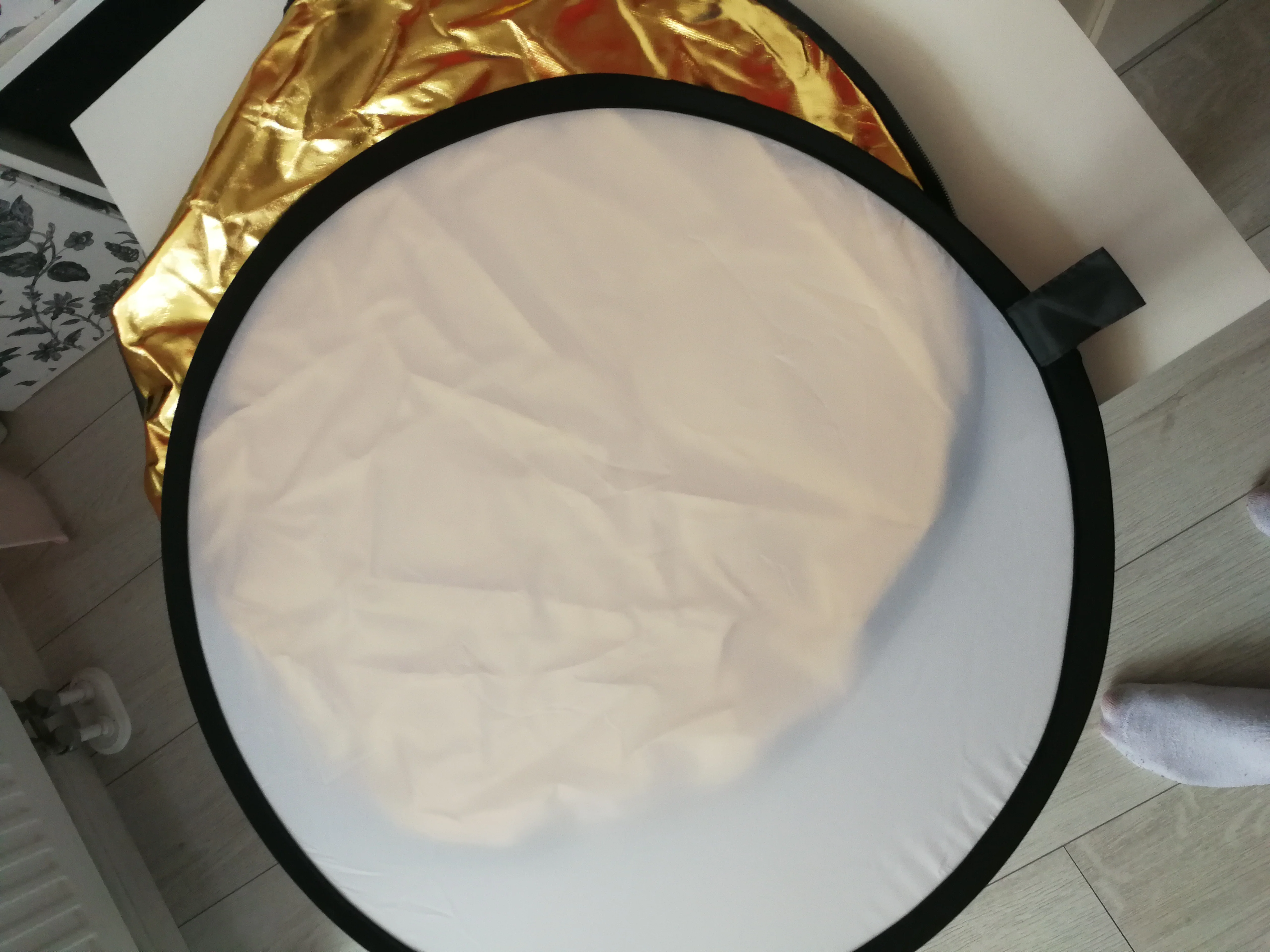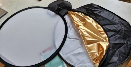 Отражатель пришёл в Киев очень быстро - через 2 недели с момента заказа! Дополнительной упаковки не было - только почтовый пакет и чехол самого отражателя. Всё выглядит неплохо и функцию свою выполняет - тем более, цена здесь очень хорошая. Размер как раз удобный для того, чтобы фотограф держал отражатель самостоятельно. Единственное, что немного смущает - это хлипкие молнии, с ними нужно обращаться аккуратно.